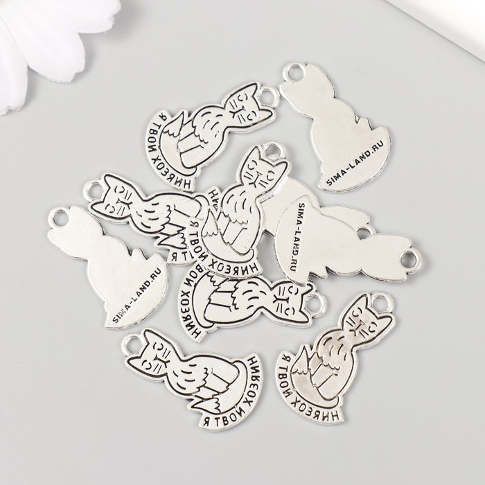 Металлический элемент, декоративная подвеска «Арт Узор. Котик: Я твой хозяин», 1.6×2.5 см — Характеристики