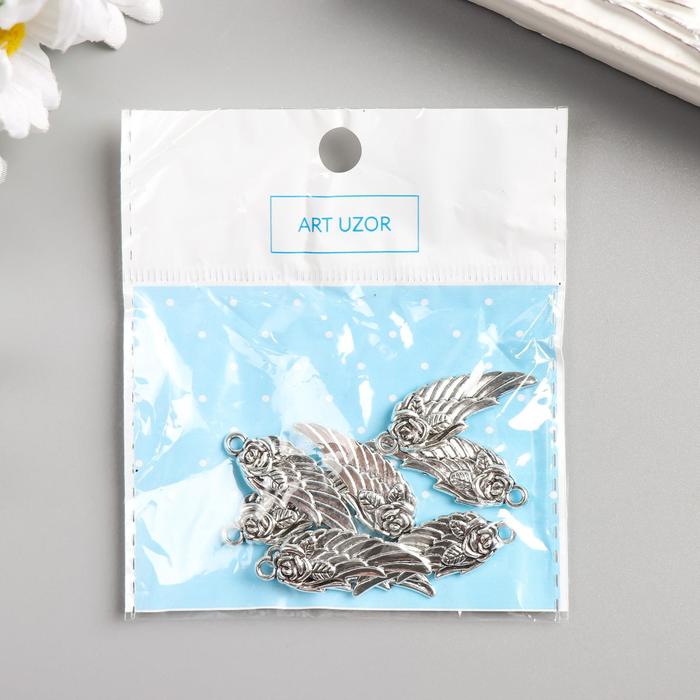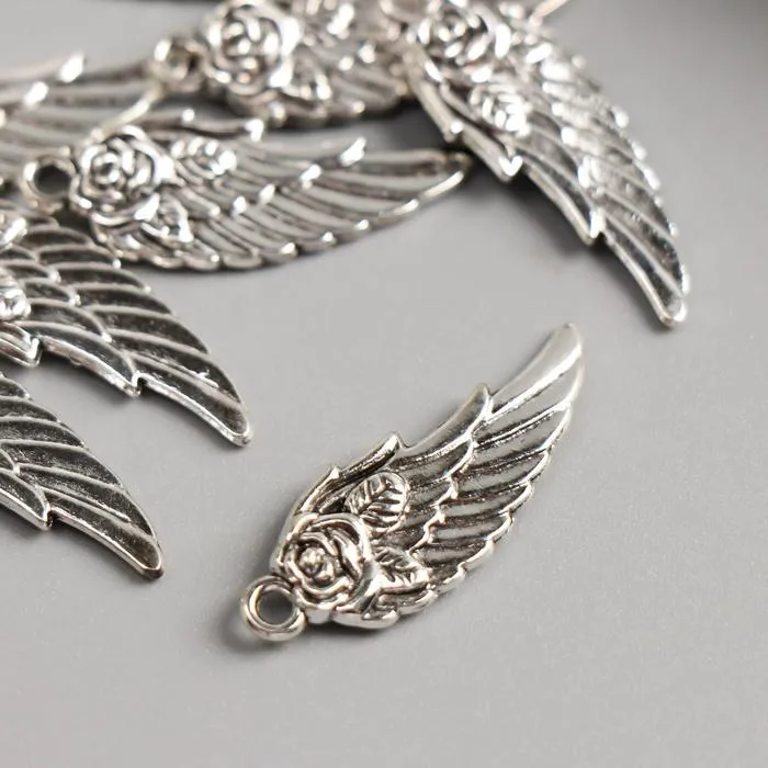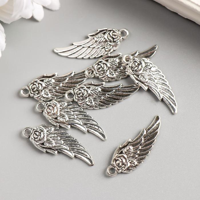 Металлический элемент, декоративная подвеска «Арт Узор. Крыло с розой», серебро, 3×1.1 см