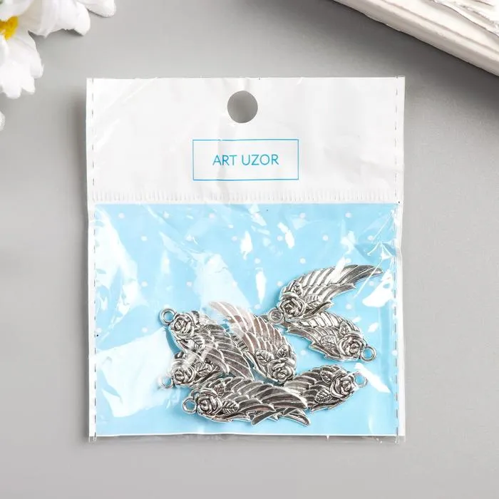 Металлический элемент, декоративная подвеска «Арт Узор. Крыло с розой», серебро, 3×1.1 см — Характеристики