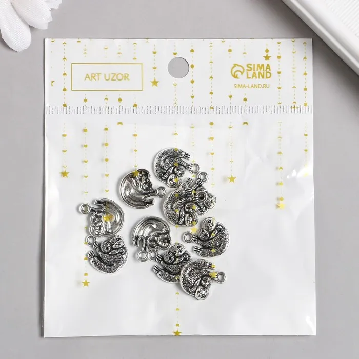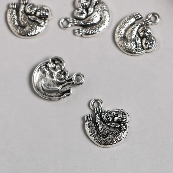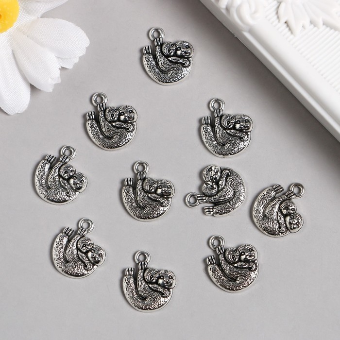 Металлический элемент, декоративная подвеска «Арт Узор. Ленивец с малышом», серебро, 1.5×1.7 см — Характеристики