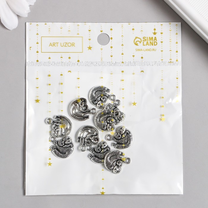 Металлический элемент, декоративная подвеска «Арт Узор. Ленивец с малышом», серебро, 1.5×1.7 см