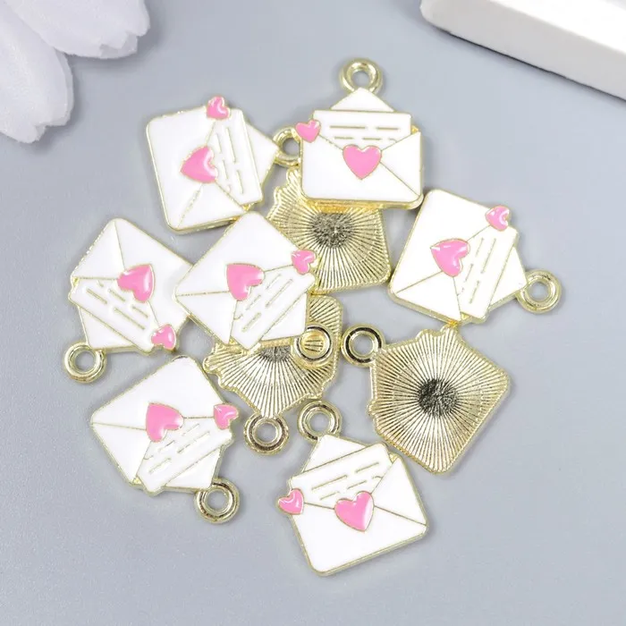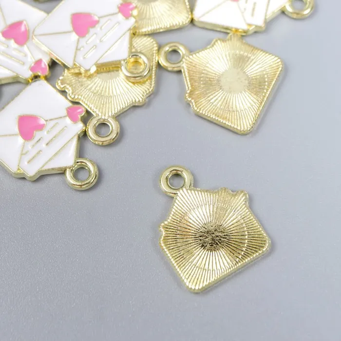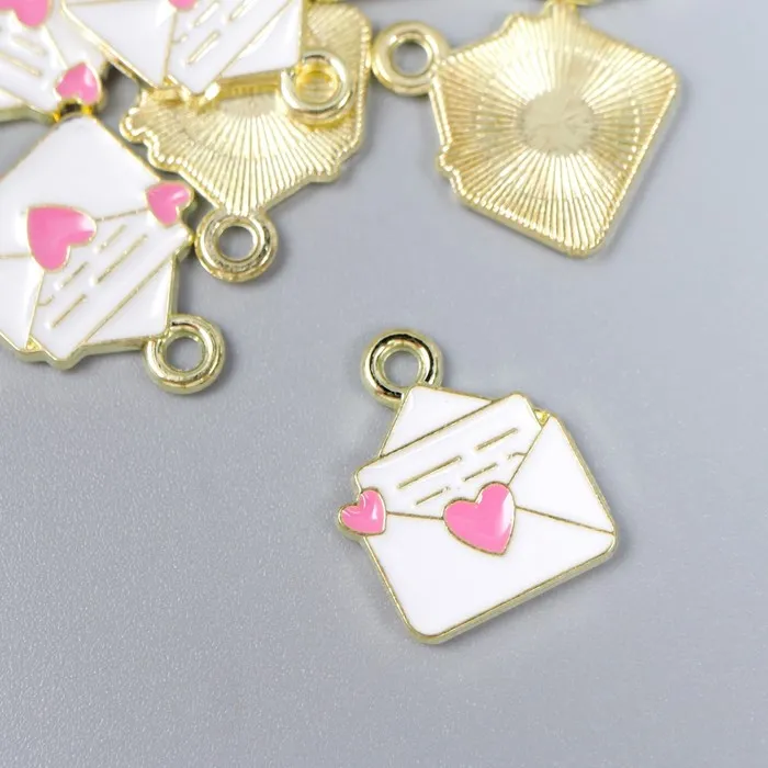 Металлический элемент, декоративная подвеска «Арт Узор. Любовное письмо», эмаль, бело-розовый, 1.6×1.2 см