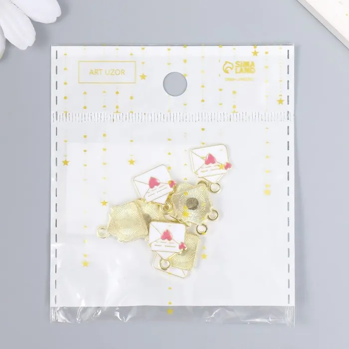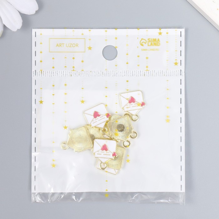 Металлический элемент, декоративная подвеска «Арт Узор. Любовное письмо», эмаль, бело-розовый, 1.6×1.2 см — Характеристики