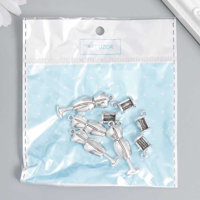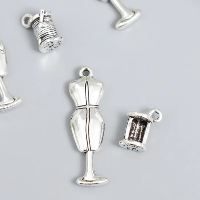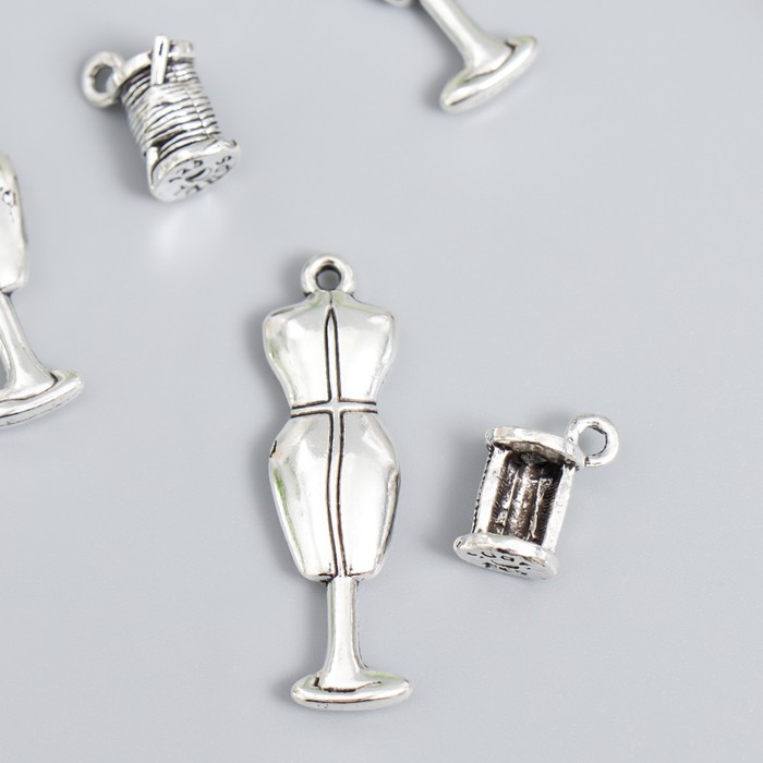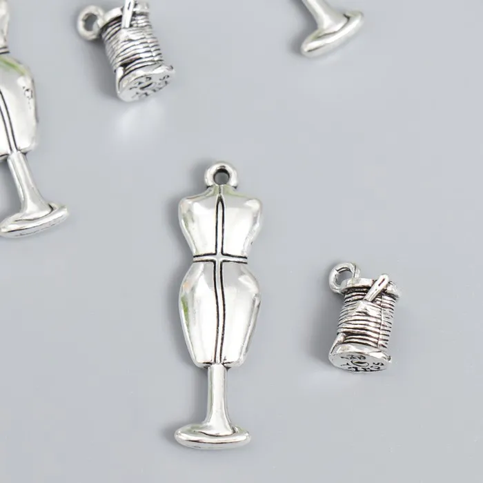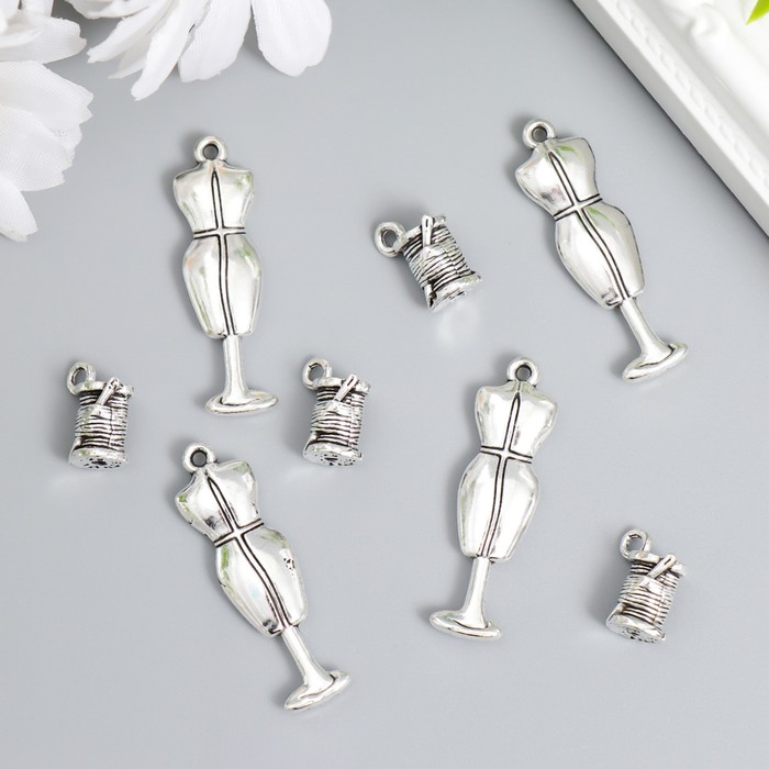 Металлический элемент, декоративная подвеска «Арт Узор. Манекен и нитки», серебро, набор 4+4 шт., 3.8×1.1 см; 1.4×1.1×0.8 см — Характеристики