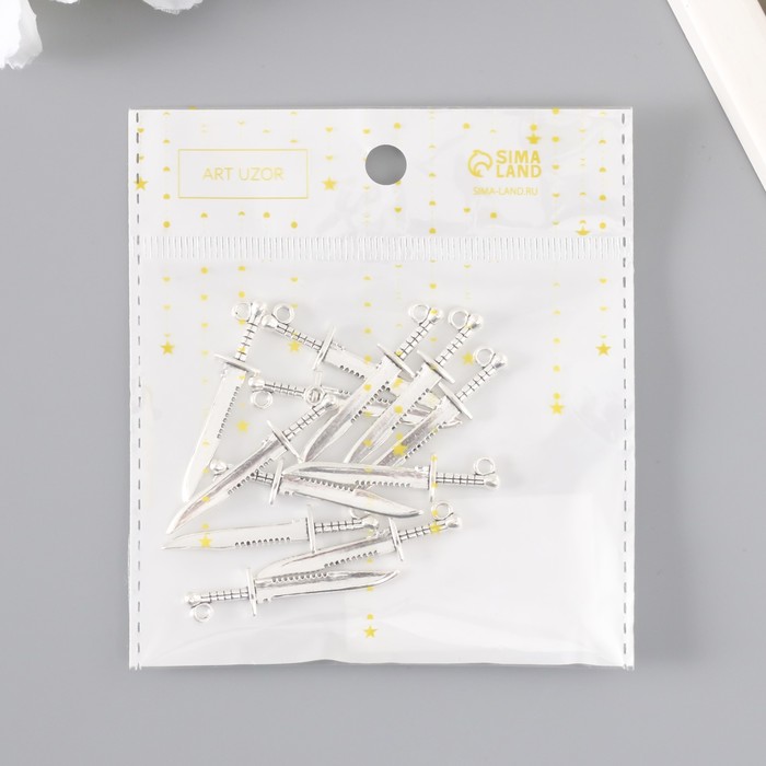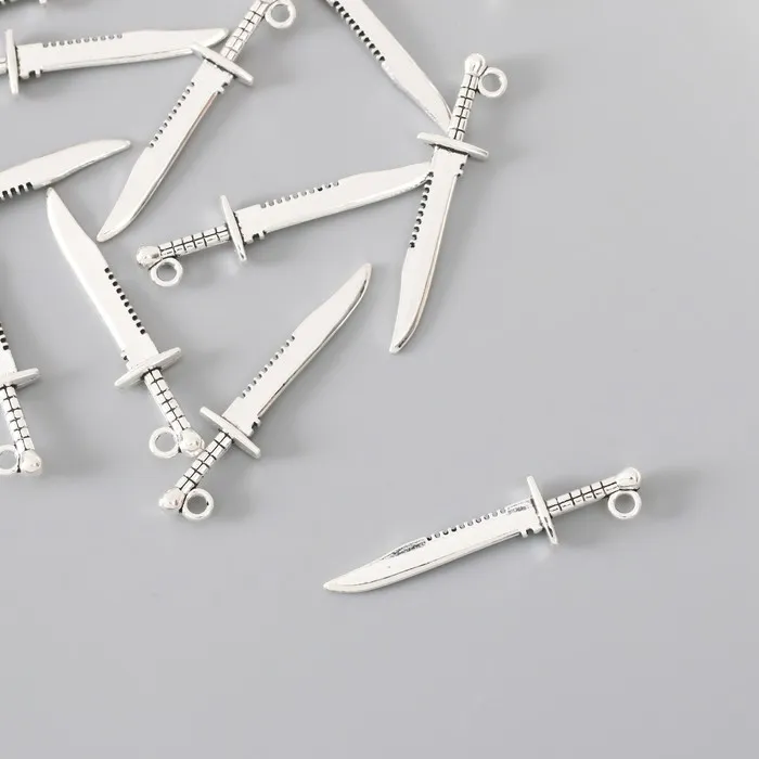 Металлический элемент, декоративная подвеска «Арт Узор. Меч короля Артура», серебро, 4.3×1 см
