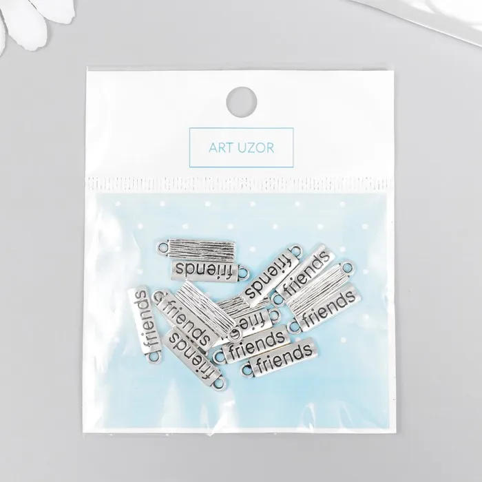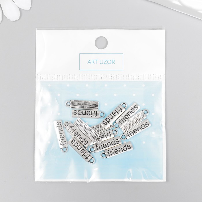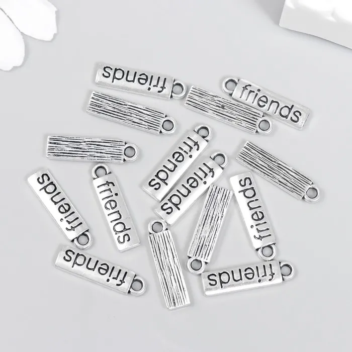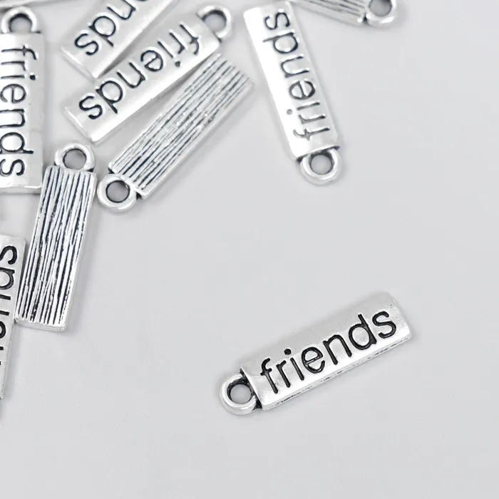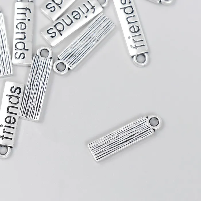 Металлический элемент, декоративная подвеска «Арт Узор. Надпись: friends», серебро, 2×0.5 см — Характеристики