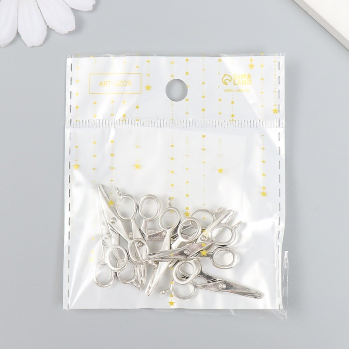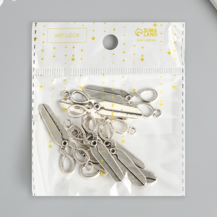 Металлический элемент, декоративная подвеска «Арт Узор. Ножницы», серебро, 3.6×1.6 см