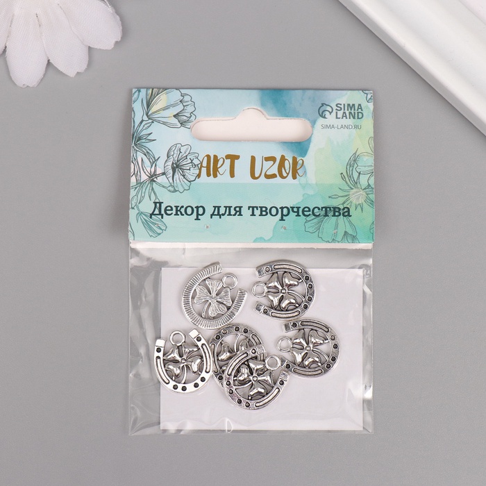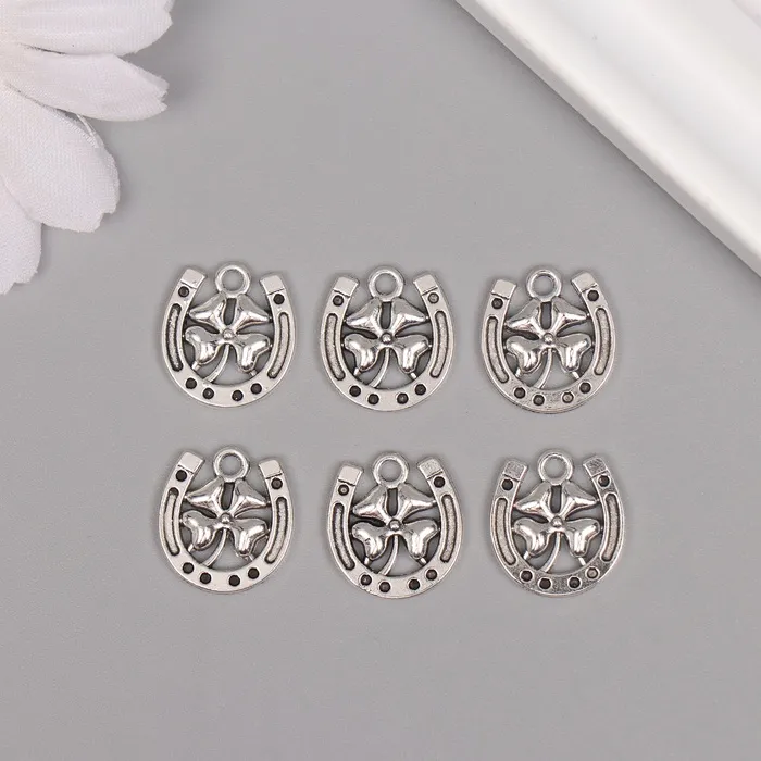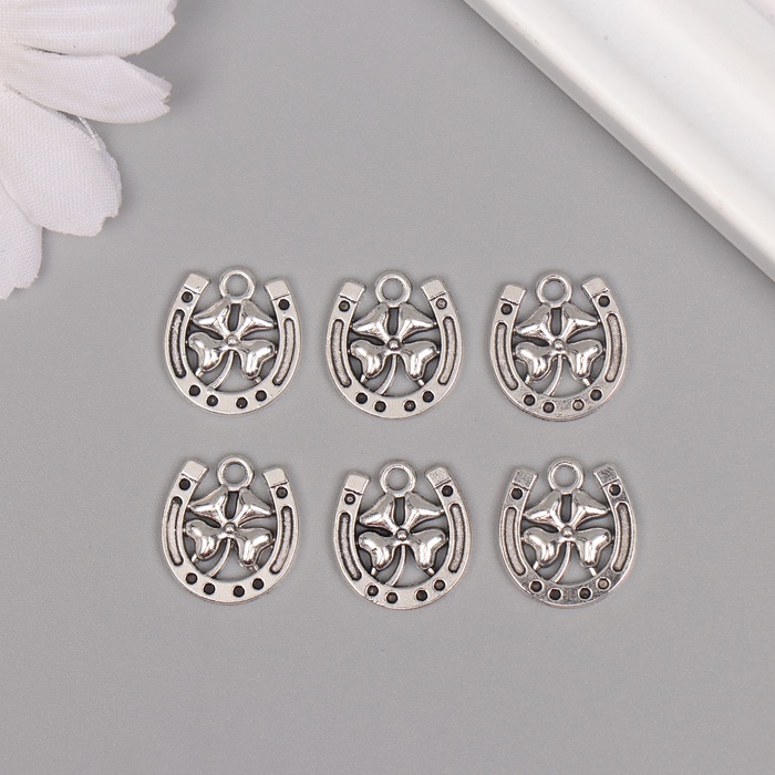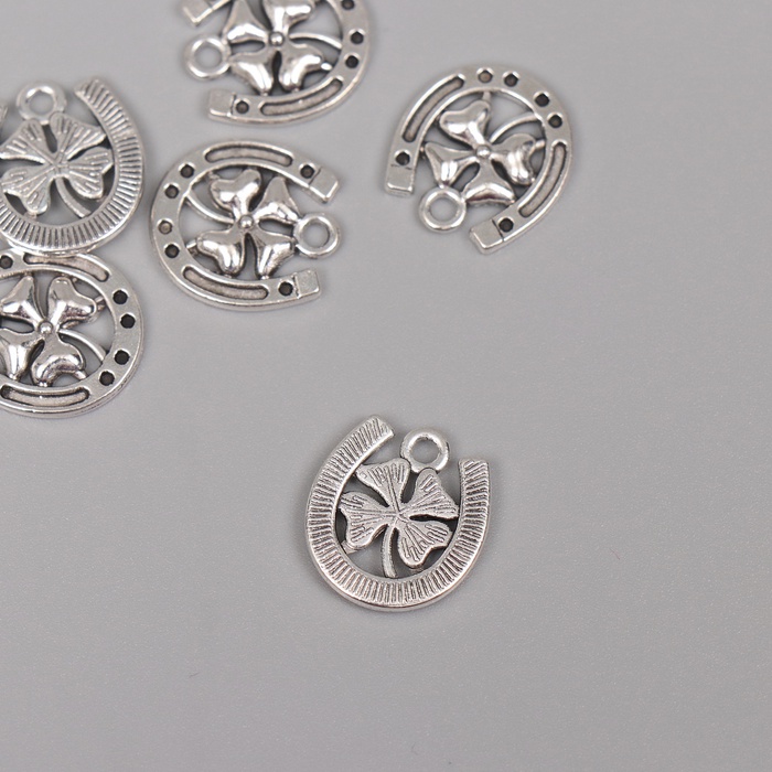 Металлический элемент, декоративная подвеска «Арт Узор. Подкова с клевером», серебро, набор 6 шт., 1.1×1.4 см — Характеристики