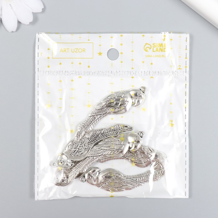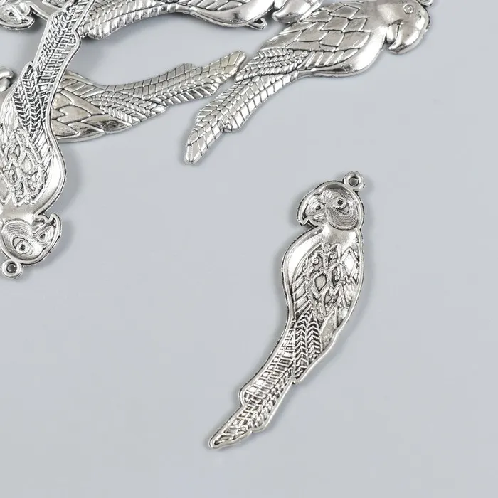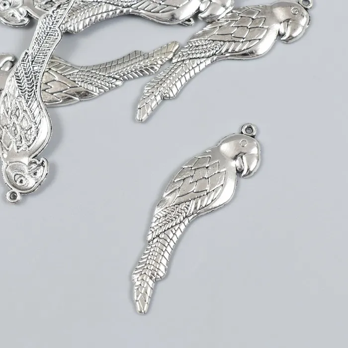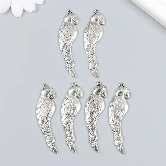 Металлический элемент, декоративная подвеска «Арт Узор. Попугай», набор 6 шт., серебро, 1.6×5.5 см