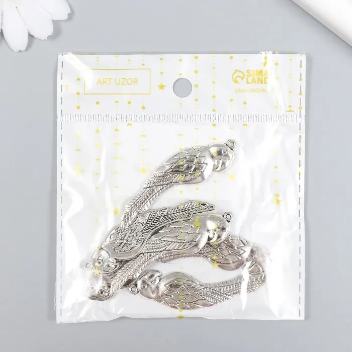 Металлический элемент, декоративная подвеска «Арт Узор. Попугай», набор 6 шт., серебро, 1.6×5.5 см — Характеристики