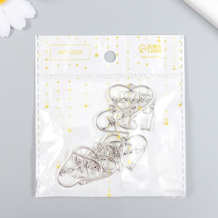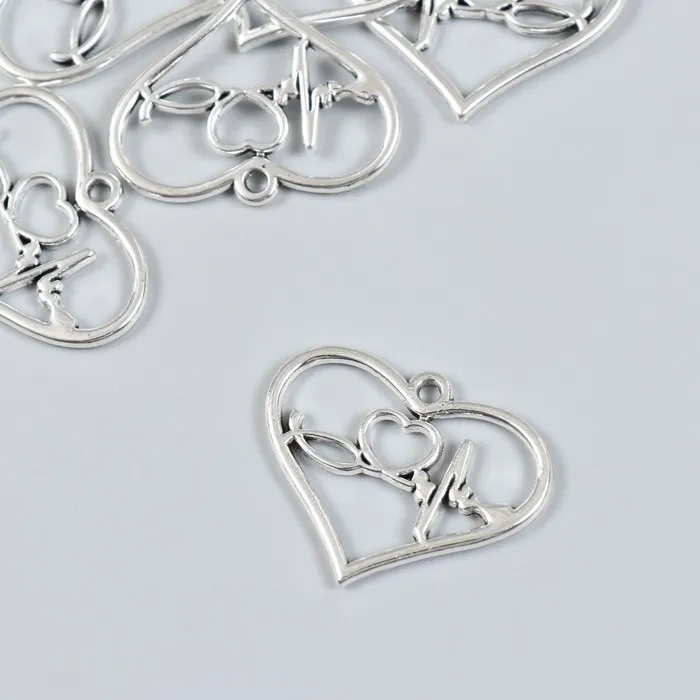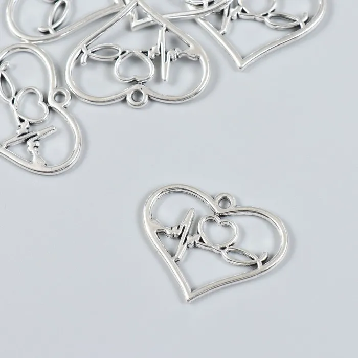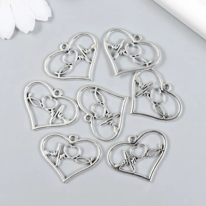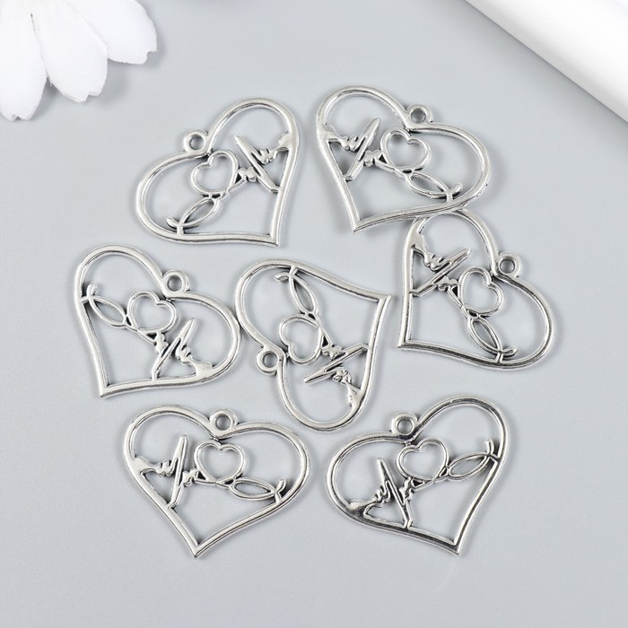 Металлический элемент, декоративная подвеска «Арт Узор. Сердечко с кардиограммой», набор 7 шт., серебро, 3×2.4 см — Характеристики