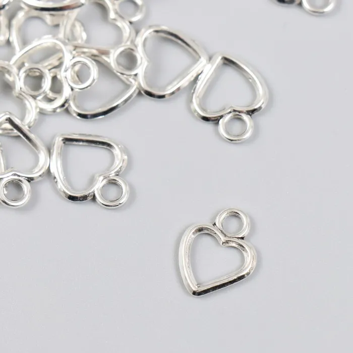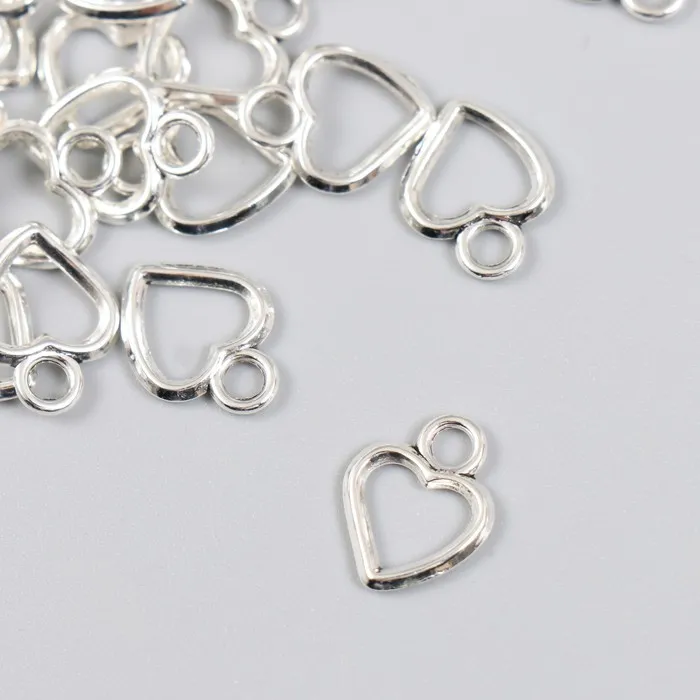 Металлический элемент, декоративная подвеска «Арт Узор. Сердечко», серебро, 1.1×1.4 см — Характеристики