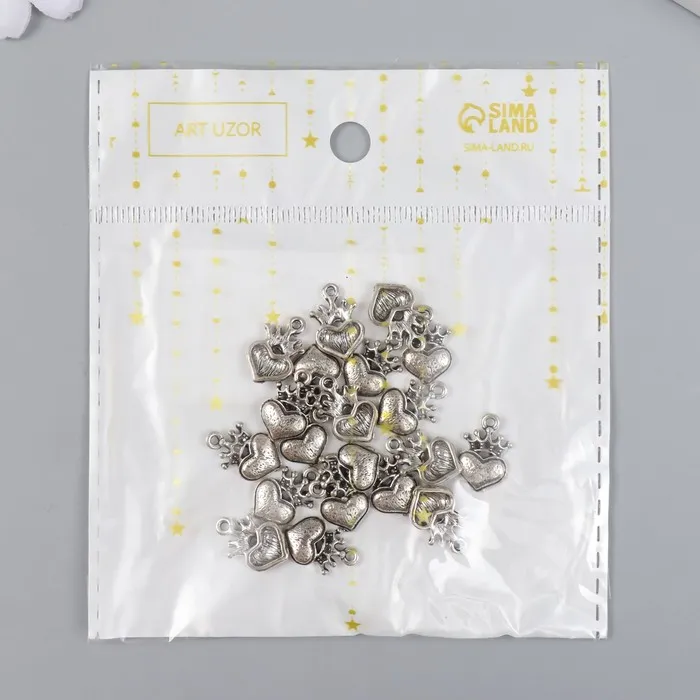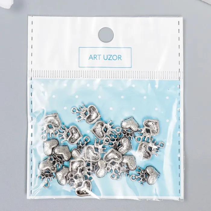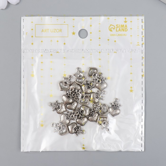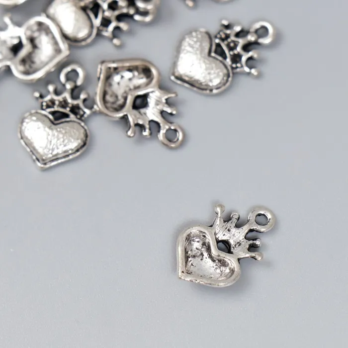 Металлический элемент, декоративная подвеска «Арт Узор. Сердце с короной», серебро, 1.6×1 см — Характеристики
