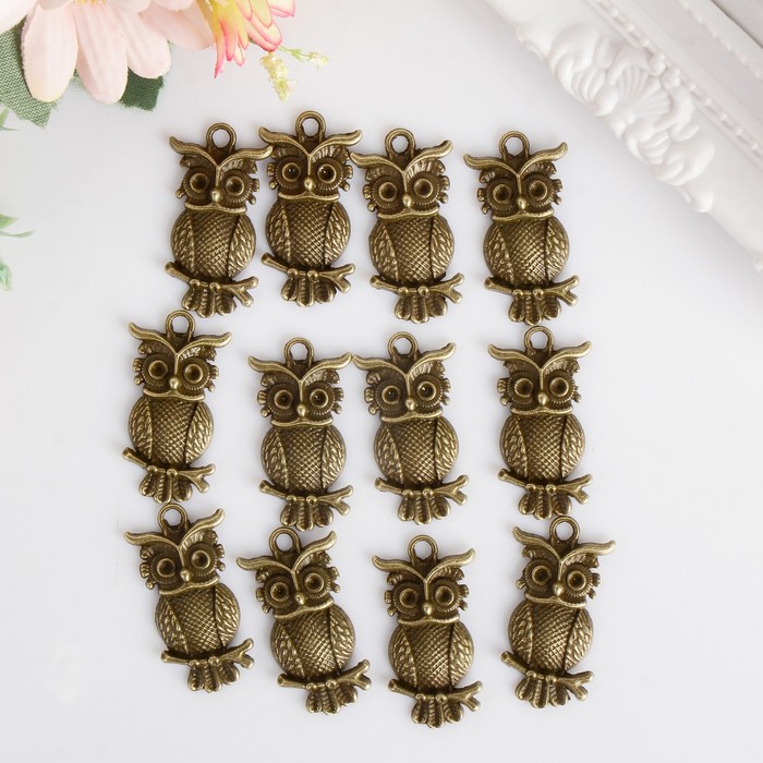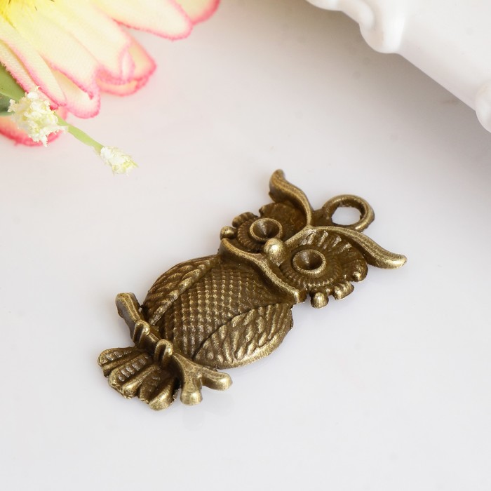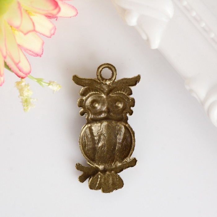 Металлический элемент, декоративная подвеска «Арт Узор. Сова на ветке», под латунь, 2.2×1.7 см — Характеристики