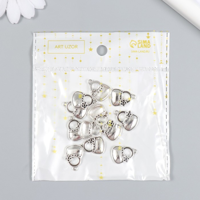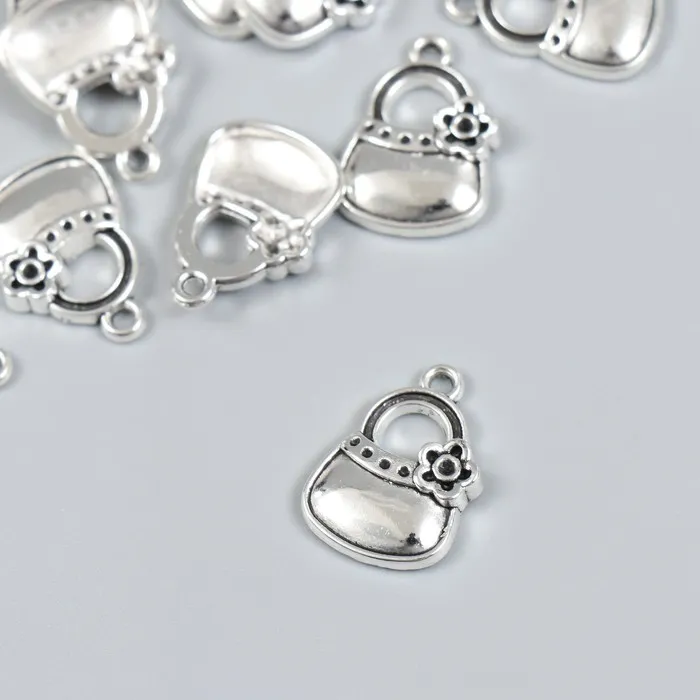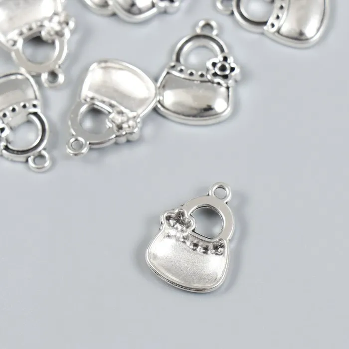 Металлический элемент, декоративная подвеска «Арт Узор. Сумочка с цветком», набор 12 шт., серебро, 1.3×1.9 см — Характеристики