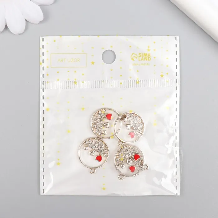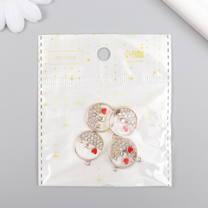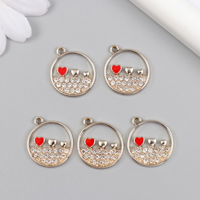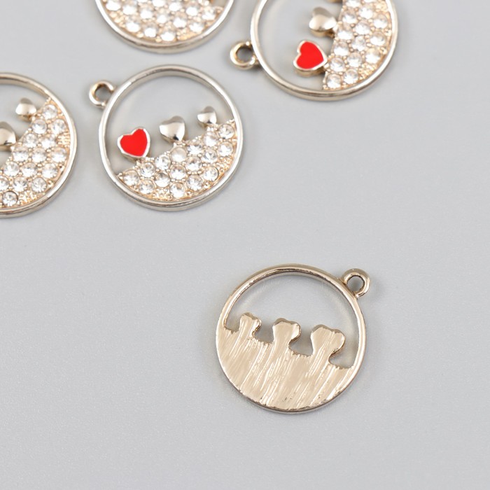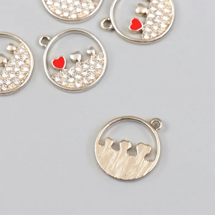 Металлический элемент, декоративная подвеска « Арт узор. Три сердца в круге», стразы, серебро, 0.2×1.8×2.1 см — Характеристики