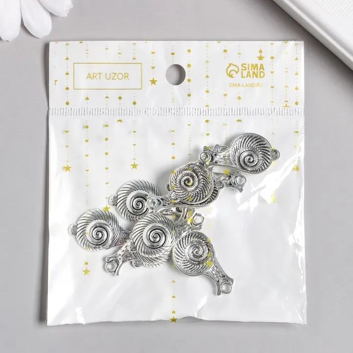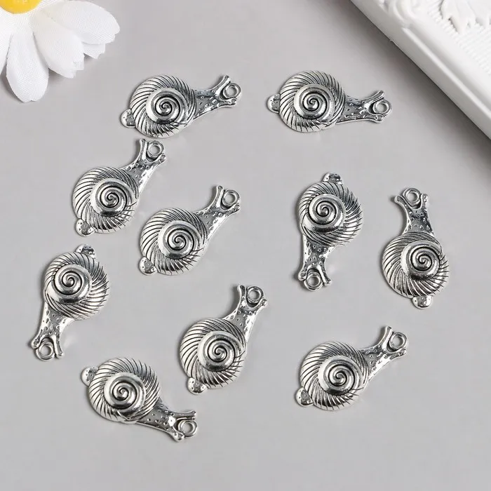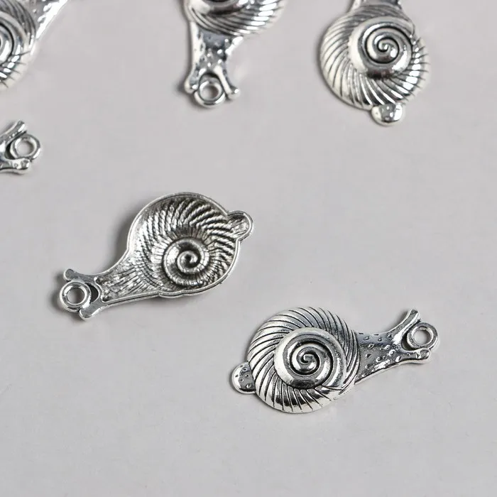 Металлический элемент, декоративная подвеска «Арт Узор. Улитка», серебро, 1.6×3.1 см