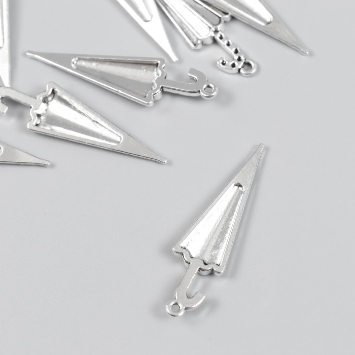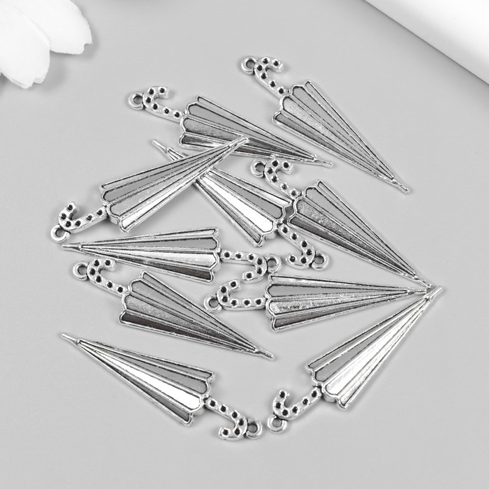 Металлический элемент, декоративная подвеска «Арт Узор. Зонтик сложенный», набор 10 шт., серебро, 1.1×4.2 см