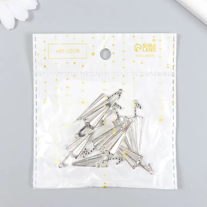 Металлический элемент, декоративная подвеска «Арт Узор. Зонтик сложенный», набор 10 шт., серебро, 1.1×4.2 см — Характеристики