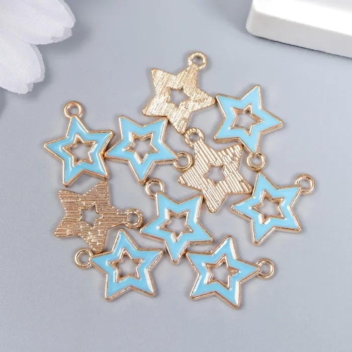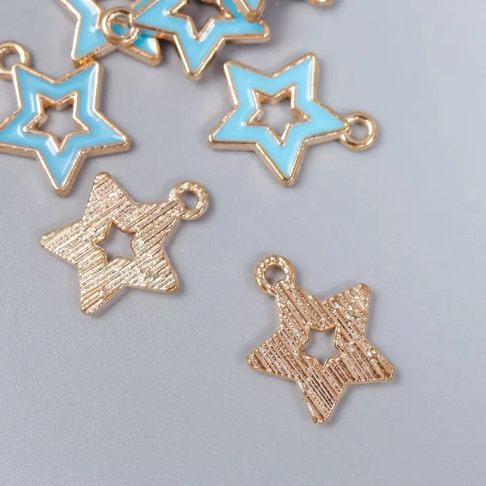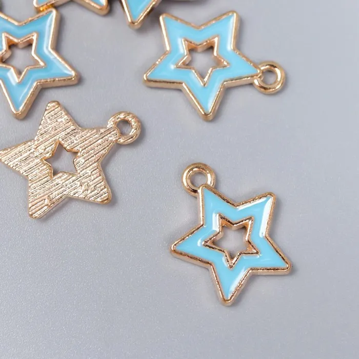 Металлический элемент, декоративная подвеска «Арт Узор. Звезда кант», голубой, 1.7×1.3 см