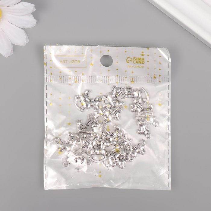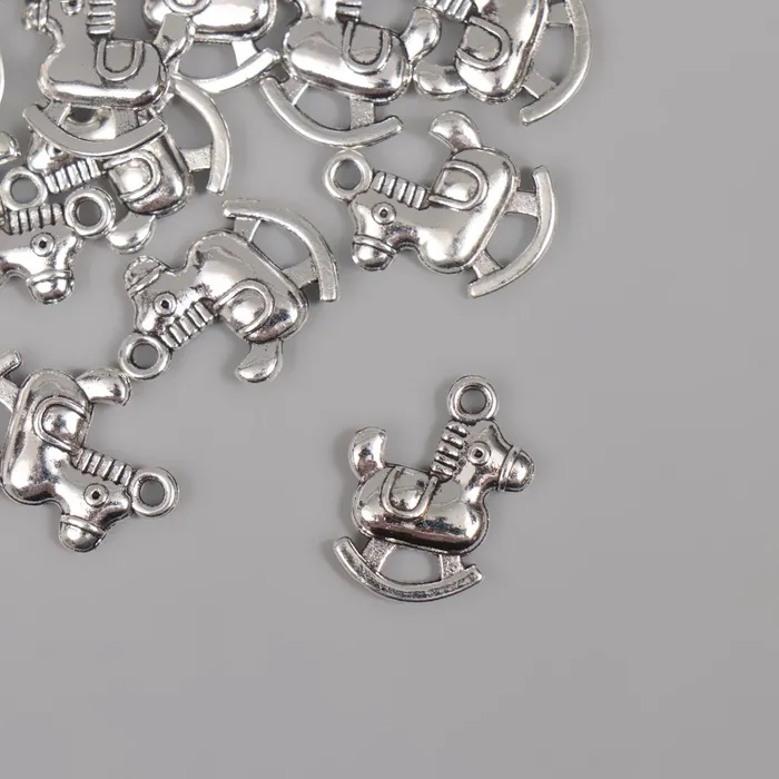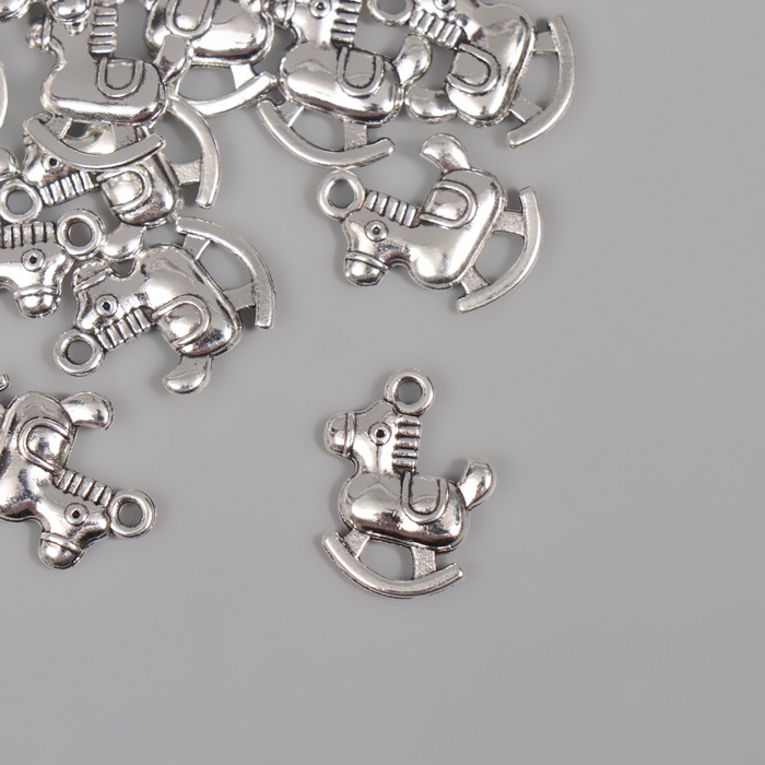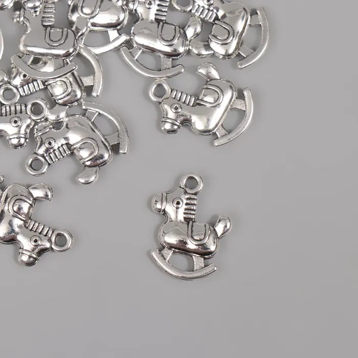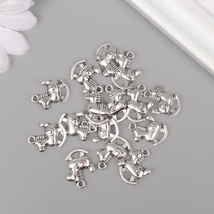 Металлический элемент, декоративная подвеска «Игрушечный конь», серебро, набор 15 шт., 1.4×1.8 см — Характеристики