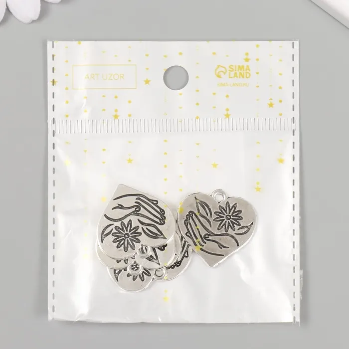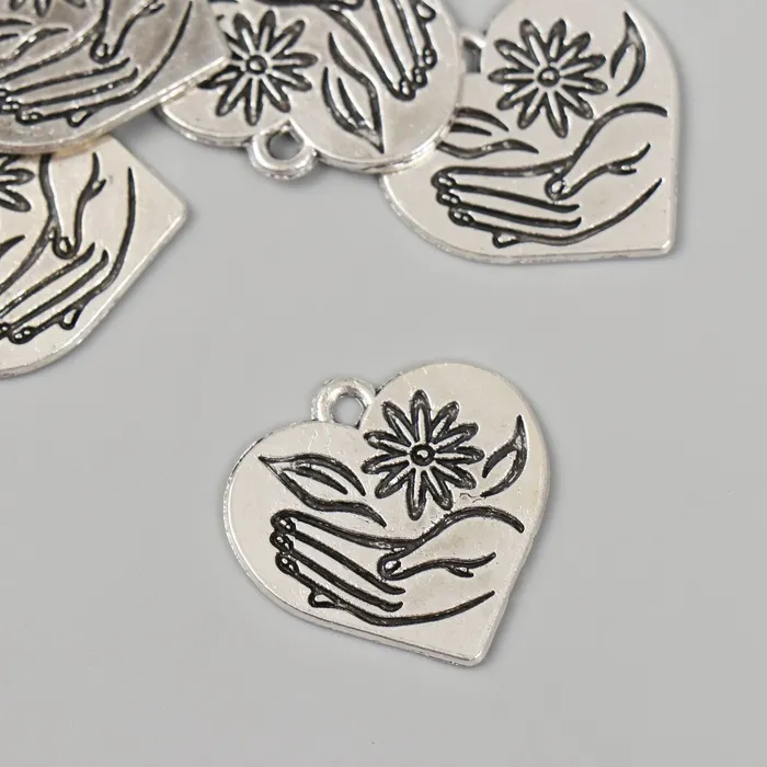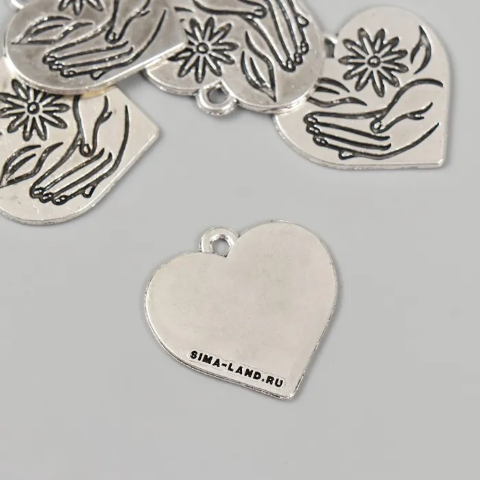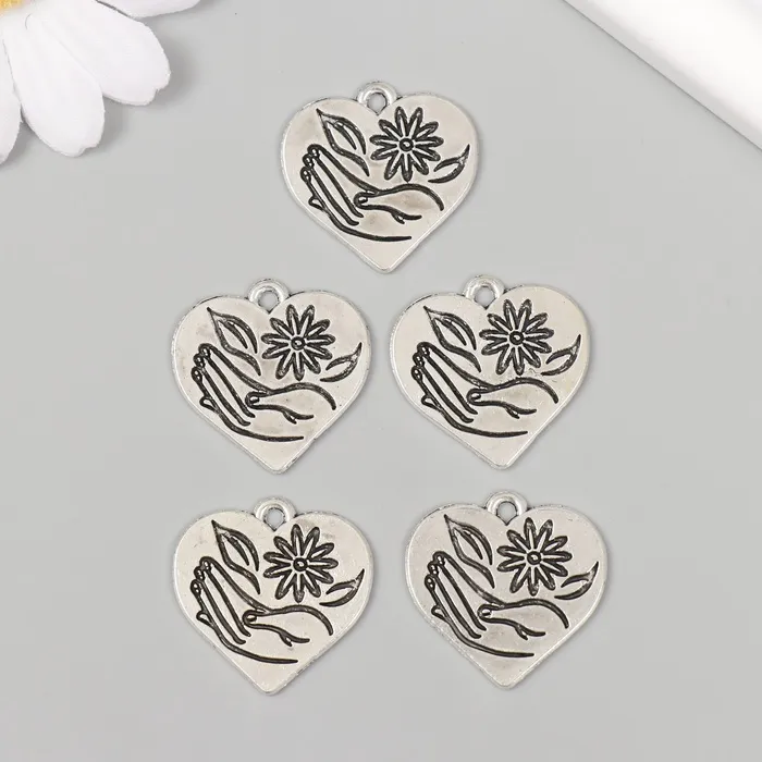 Металлический элемент, декоративная подвеска «Ромашка в руке: Сердце», набор 5 шт., 2.3×2.5 см — Характеристики