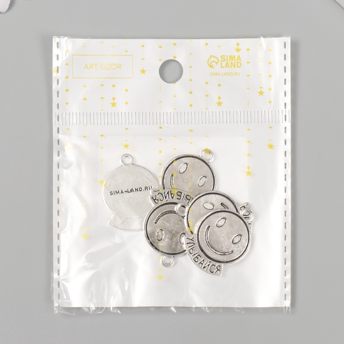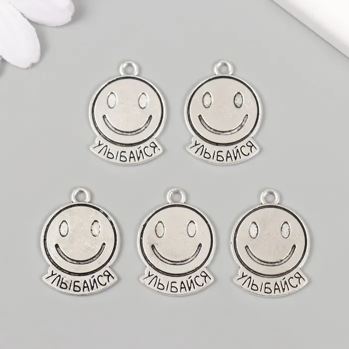 Металлический элемент, декоративная подвеска «Смайл: Улыбайся», набор 5 шт., 1.9×2.5 см — Характеристики