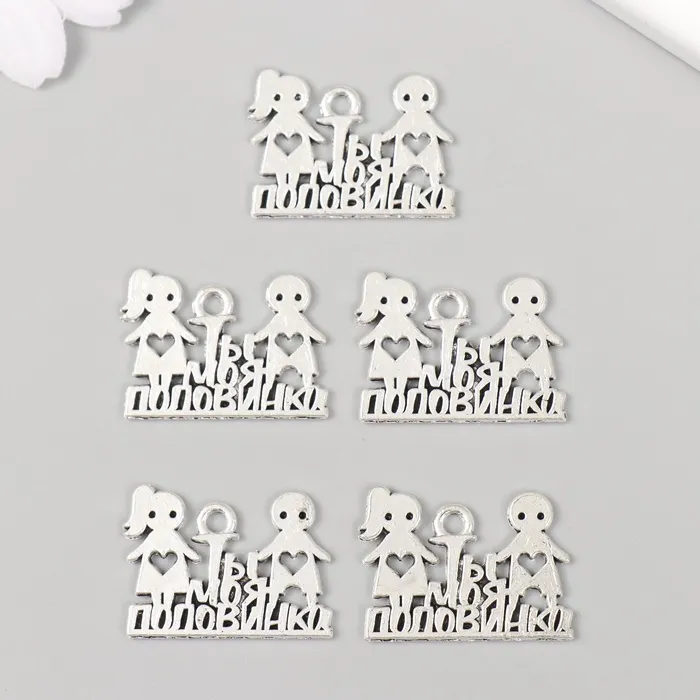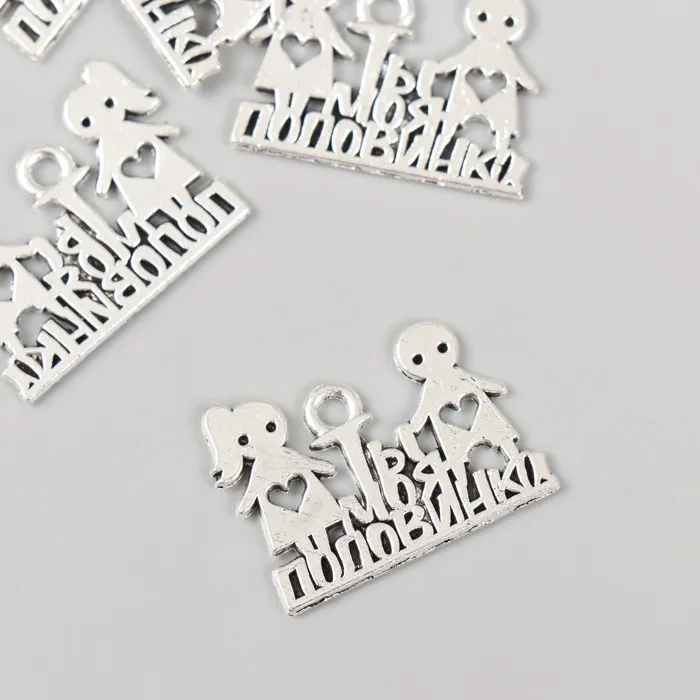 Металлический элемент, декоративная подвеска «Ты моя половинка», набор 5 шт., 1.8×2.5 см — Характеристики