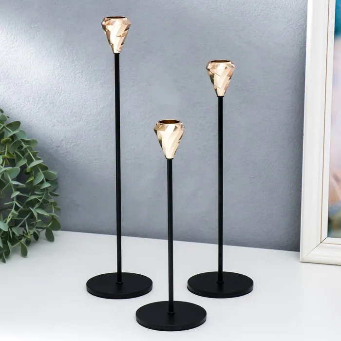 Металлический подсвечник «Данте», набор 3 шт., чёрный с золотом, 8×8×22 см; 8×8×27 см; 8×8×32.5 см — Характеристики