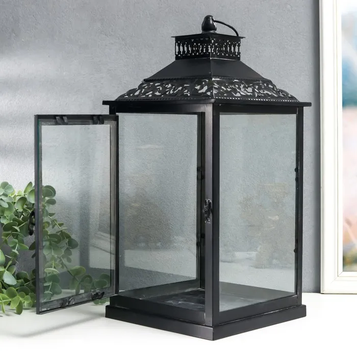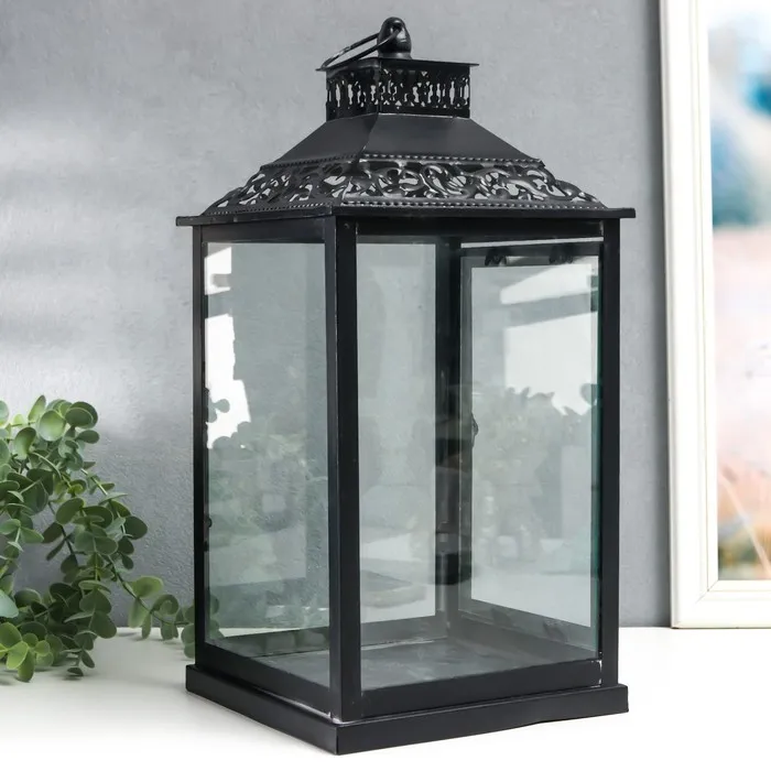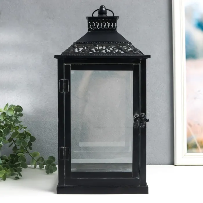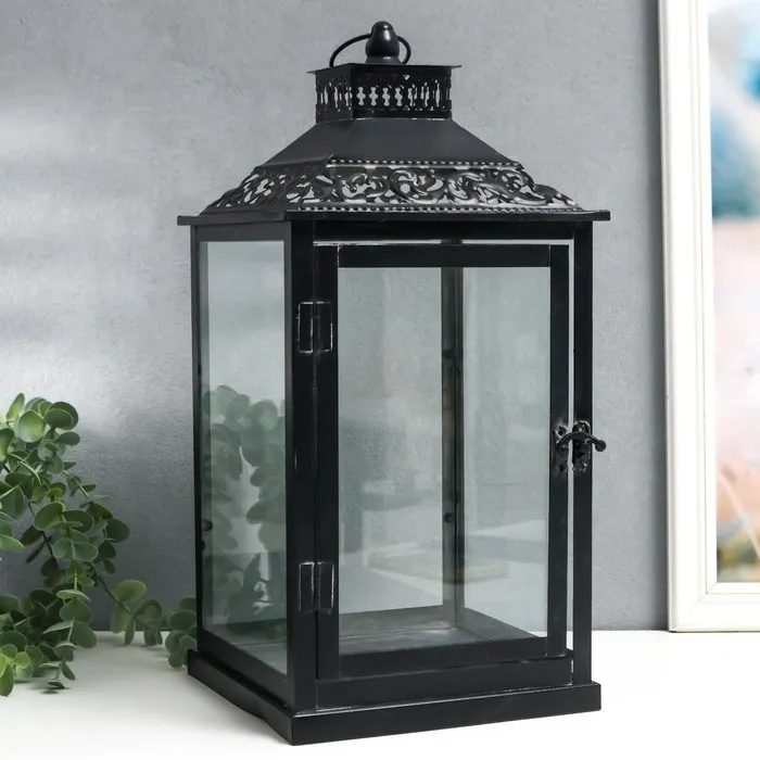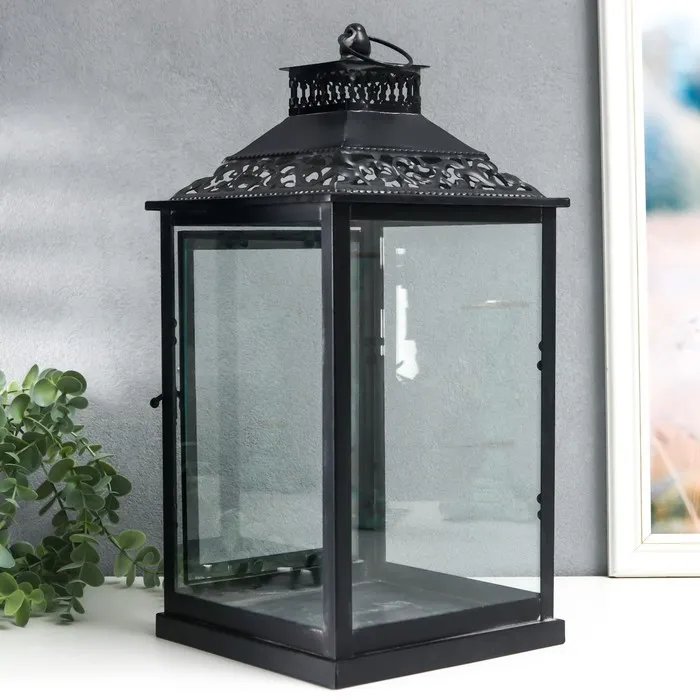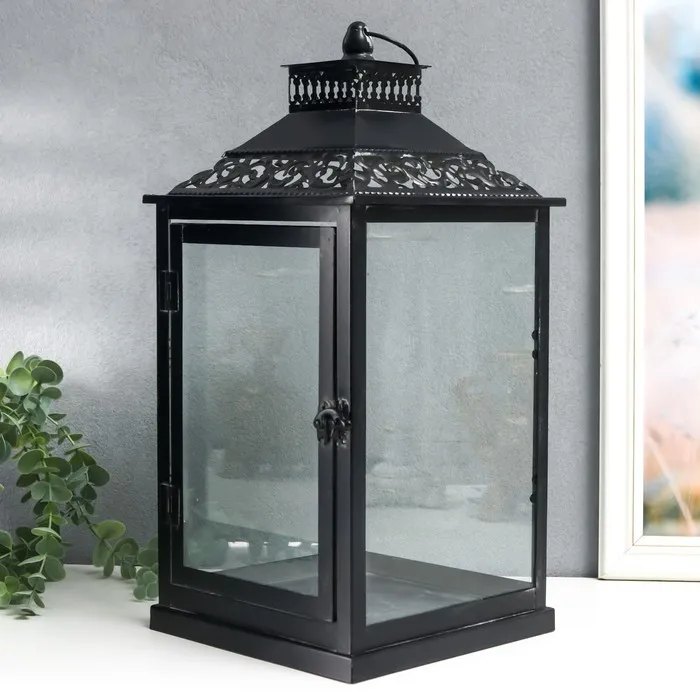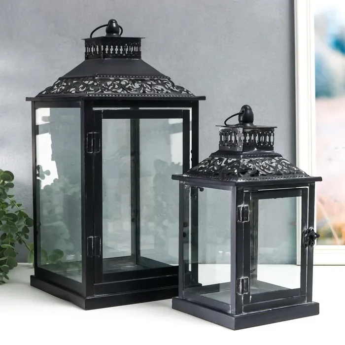 Металлический подсвечник-фонарь «Этна», набор 2 шт., металл, стекло, чёрный, 19×19×39 см, 14×14×27 см — Характеристики