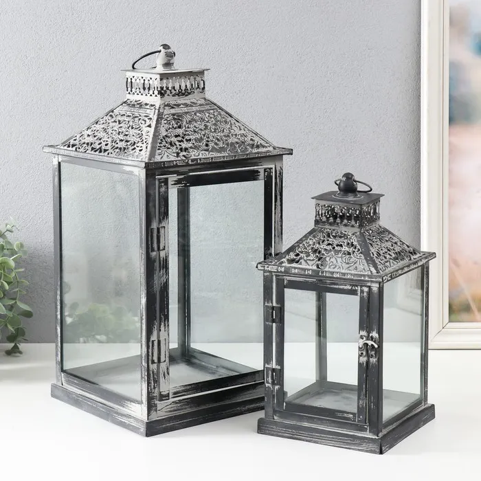 Металлический подсвечник-фонарь на 1 свечу «Кружевные узоры», набор 2 шт., 14×14×27 см; 20×20×40 см — Характеристики