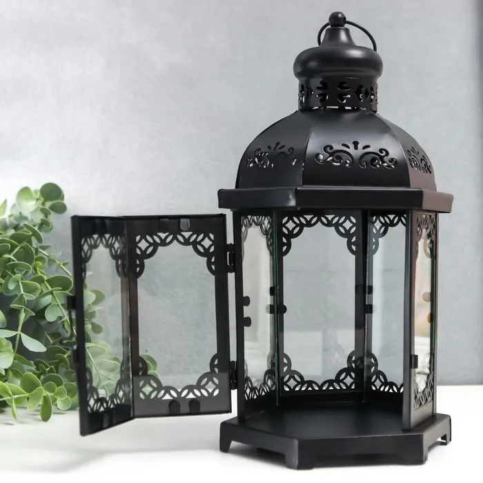 Металлический подсвечник-фонарь на 1 свечу «Цветущие вензеля», стекло, d=10 см, чёрный, 13.5×15×29 см — Характеристики