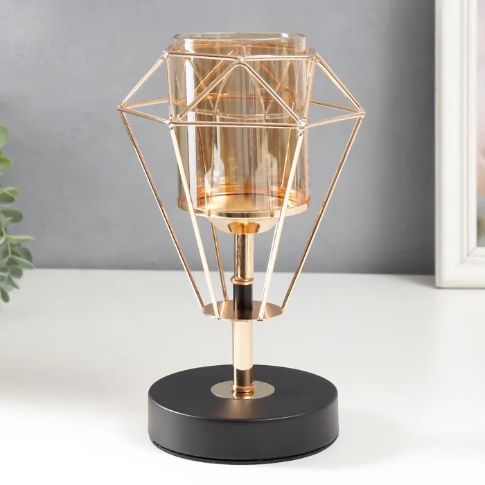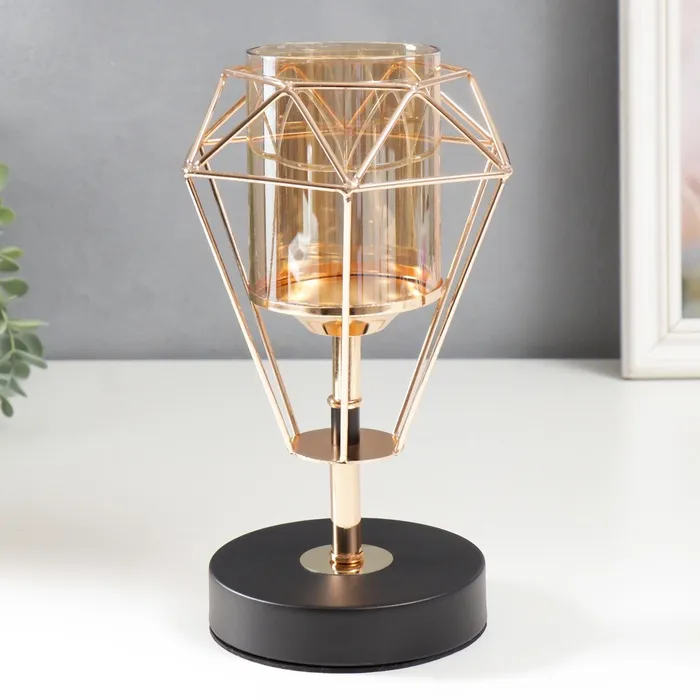 Металлический подсвечник на 1 свечу «Бутон с гранями», золото, чёрный, 23×15×15 см — Характеристики