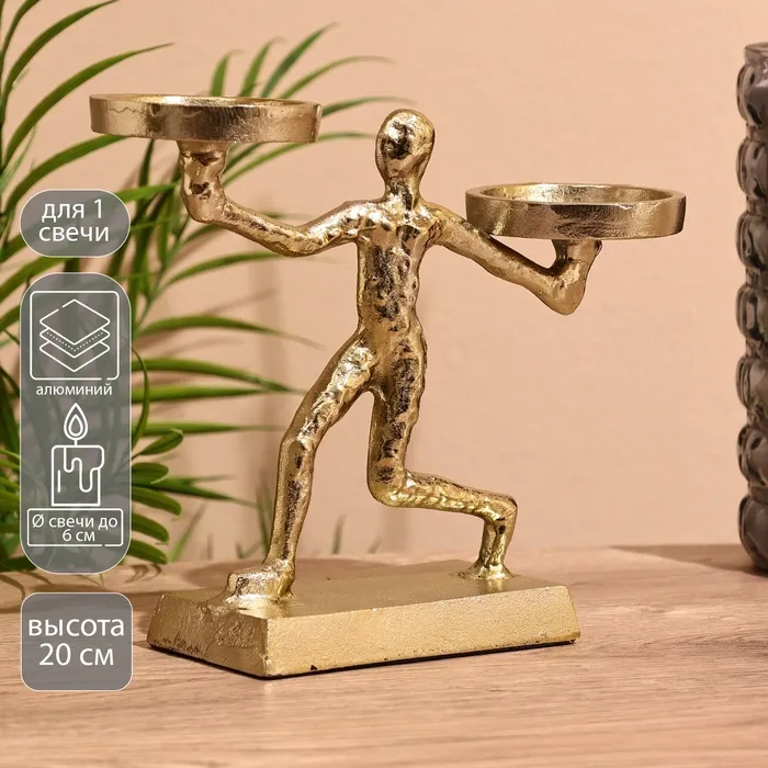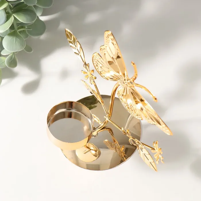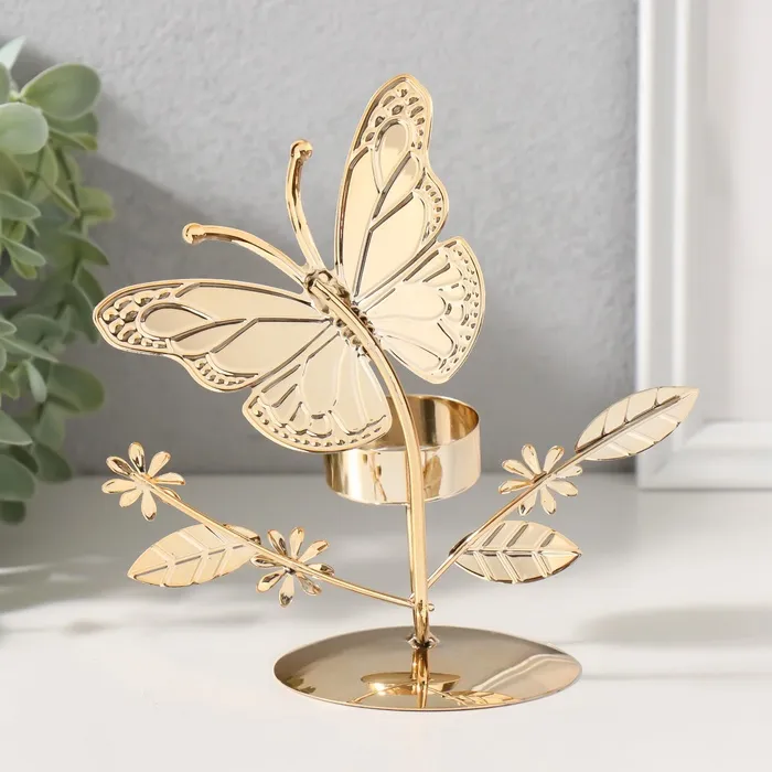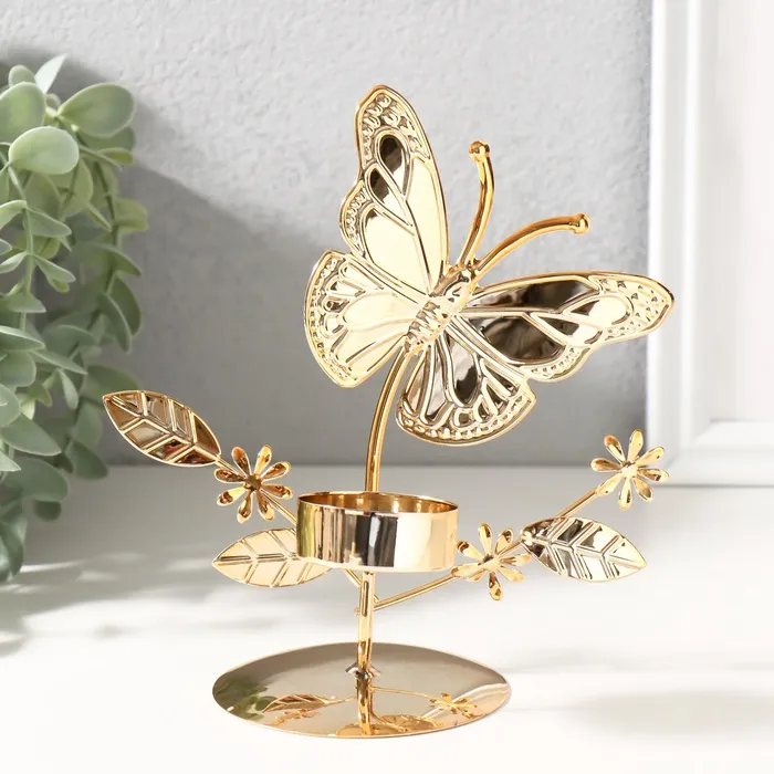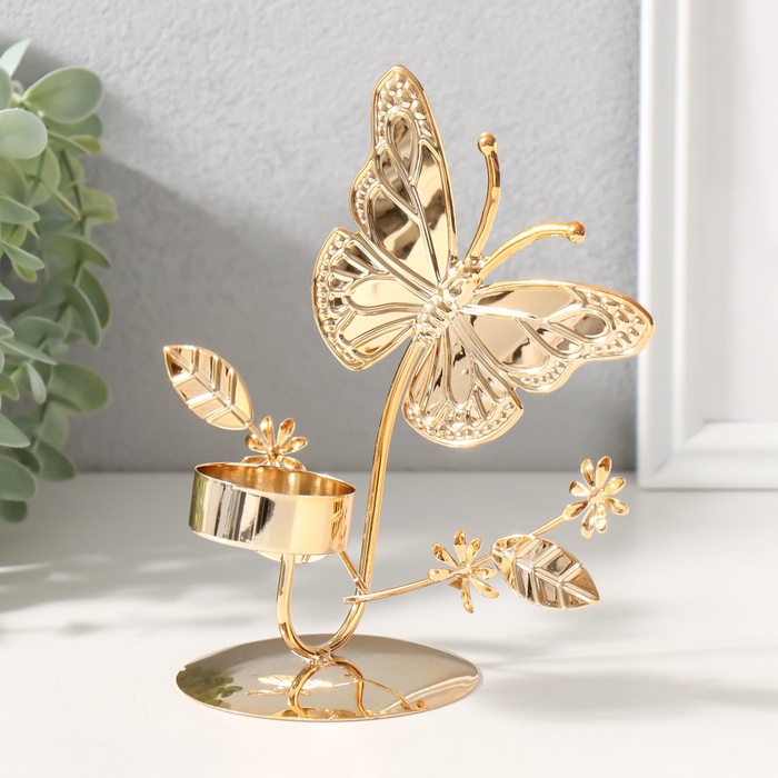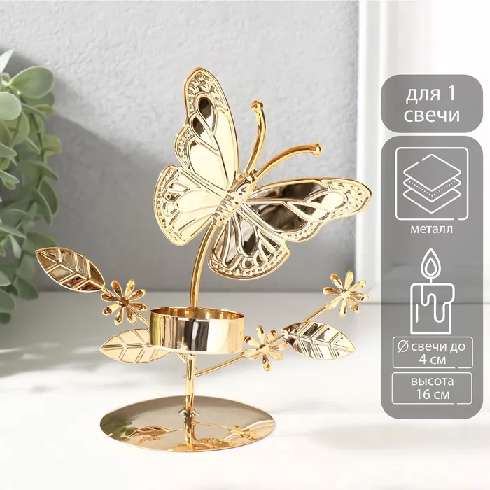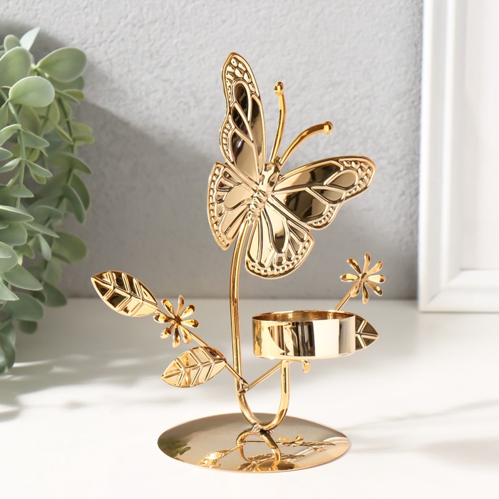 Металлический подсвечник на 1 свечу d=4 см «Бабочки в поле», золото, 7.7×14×16 см — Характеристики