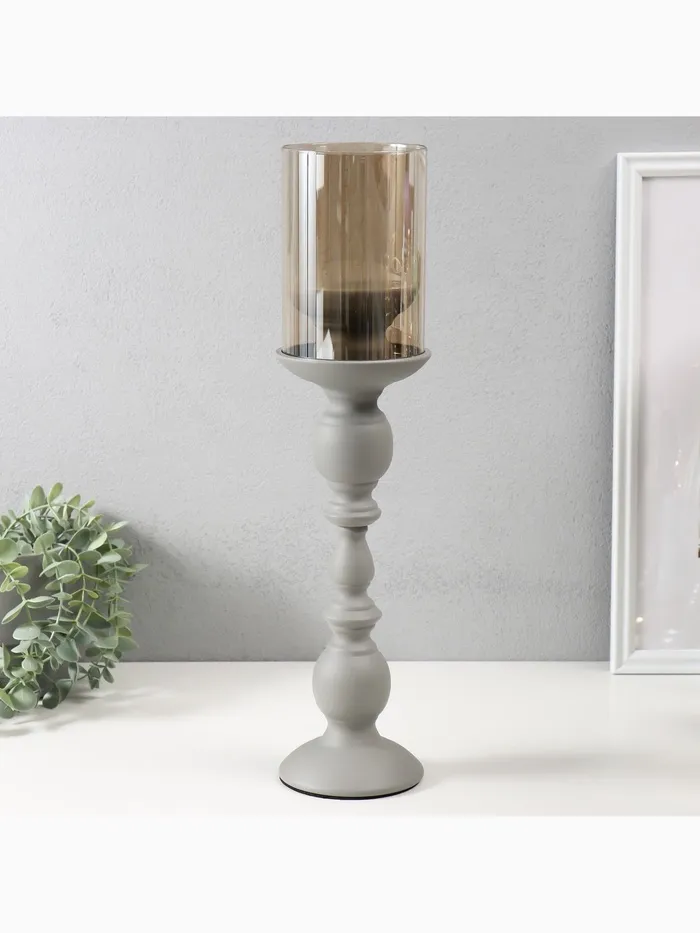 Металлический подсвечник на 1 свечу d=9 см «Хевард», серый, d=9 см, 10×10×36 см — Характеристики