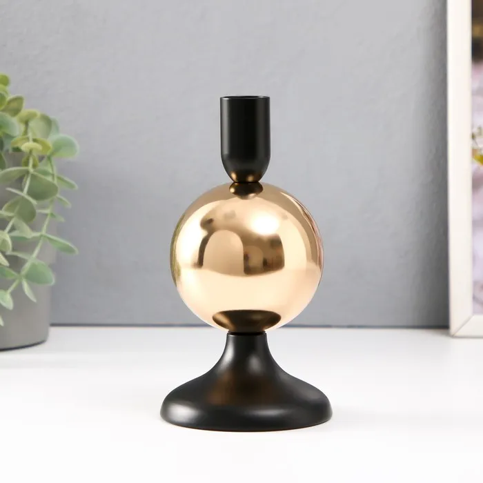 Металлический подсвечник на 1 свечу «Дельфуза. Золотой шар», d=2 см, 9×9×17 см