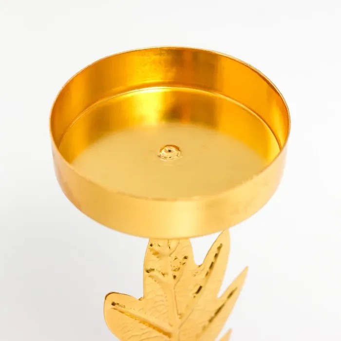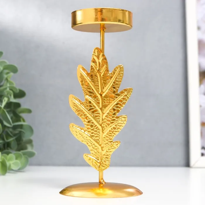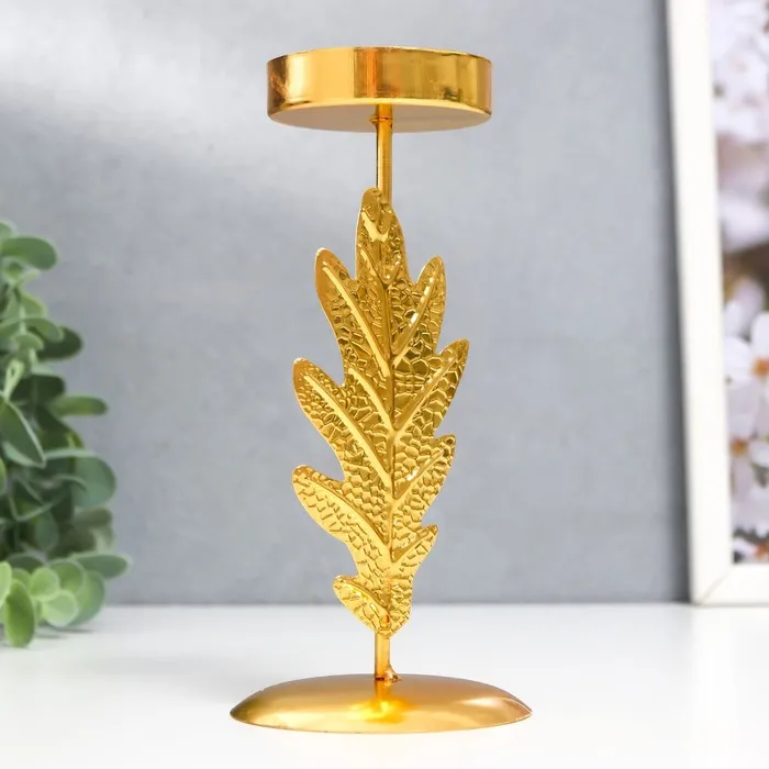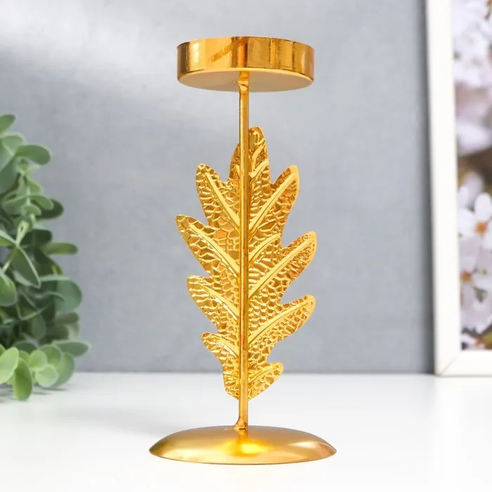 Металлический подсвечник на 1 свечу «Дубовый лист», d=5 см, золото, 6.5×6.5×14.5 см — Характеристики