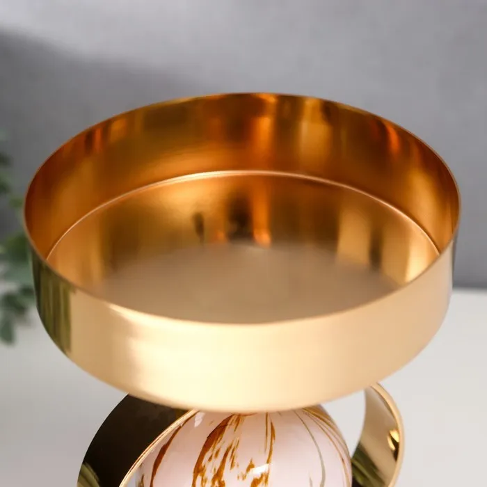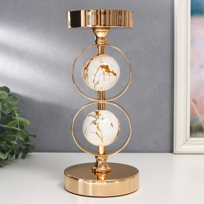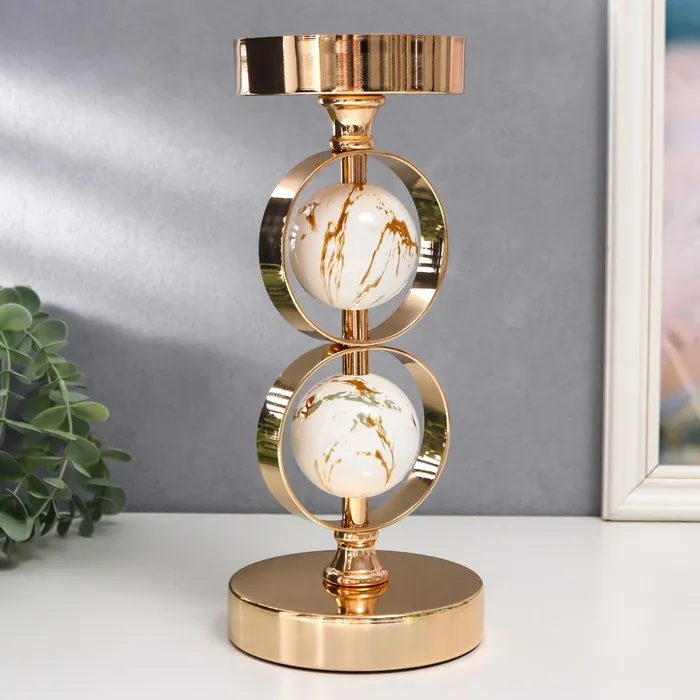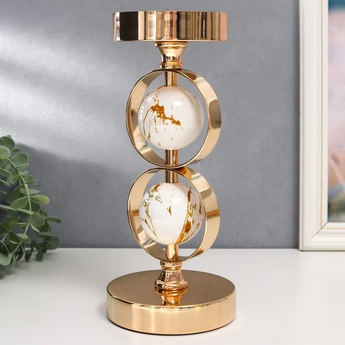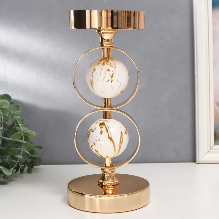 Металлический подсвечник на 1 свечу «Два белых мраморных шара», золото, 27×12×12 см — Характеристики