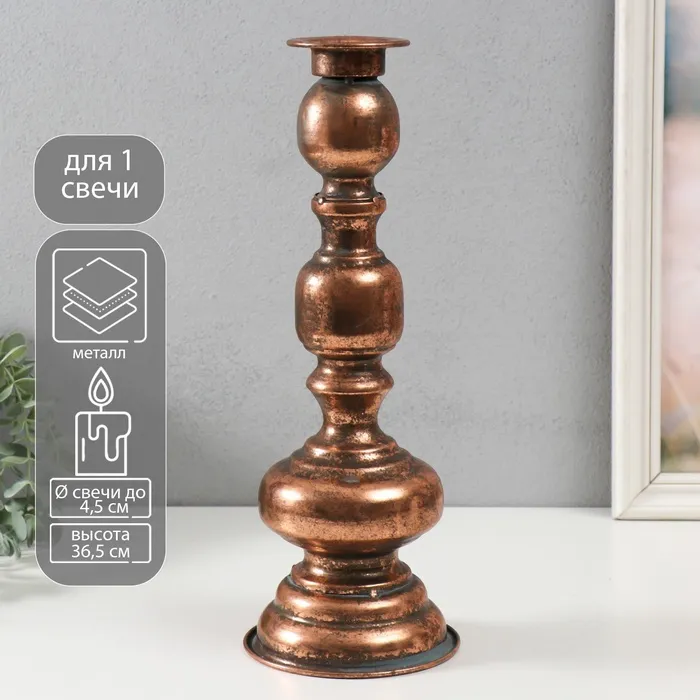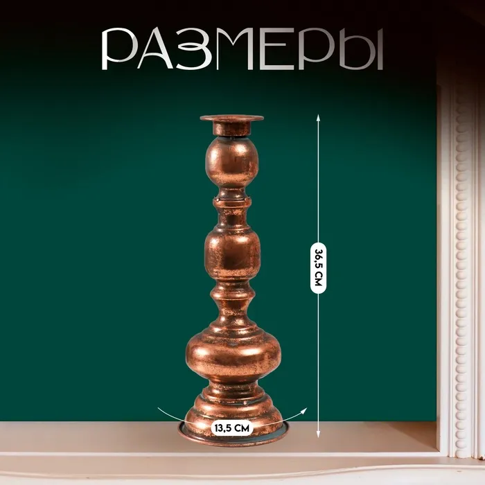 Металлический подсвечник на 1 свечу «Эрмете», состаренная бронза, 13.5×13.5×36.5 см — Характеристики