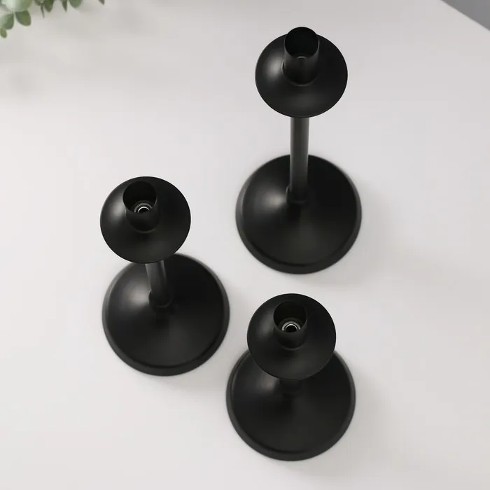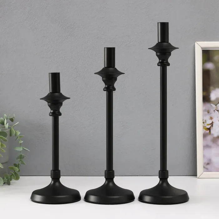 Металлический подсвечник на 1 свечу «Фраген», набор 3 шт., d=2 см, чёрный, 10×36 см; 10×31 см; 10×26 см — Характеристики