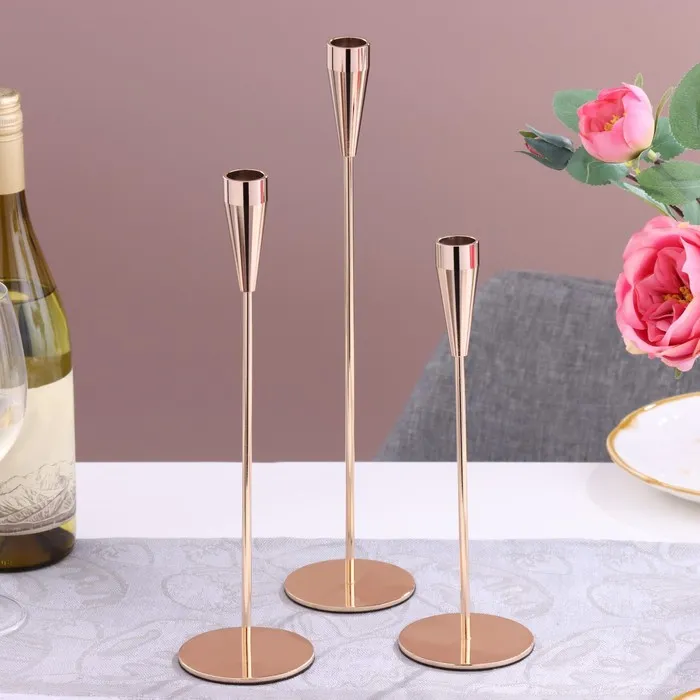 Металлический подсвечник на 1 свечу «Грация», набор 3 шт., d=5 см, h=36.5 см; 31 см; 26 см