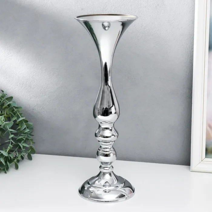 Металлический подсвечник на 1 свечу «Изящный», серебристый, 38×13×13 см