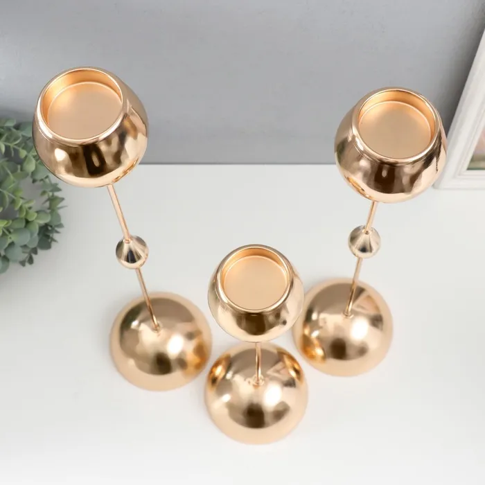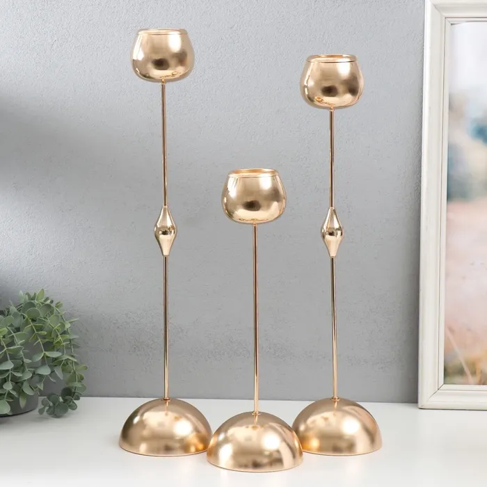 Металлический подсвечник на 1 свечу «Капли», набор 3 шт., d=5 см, золото, 12×36.5 см, 12×46.5 см, 12×56 см