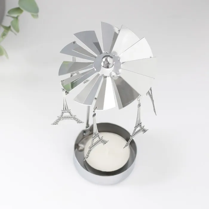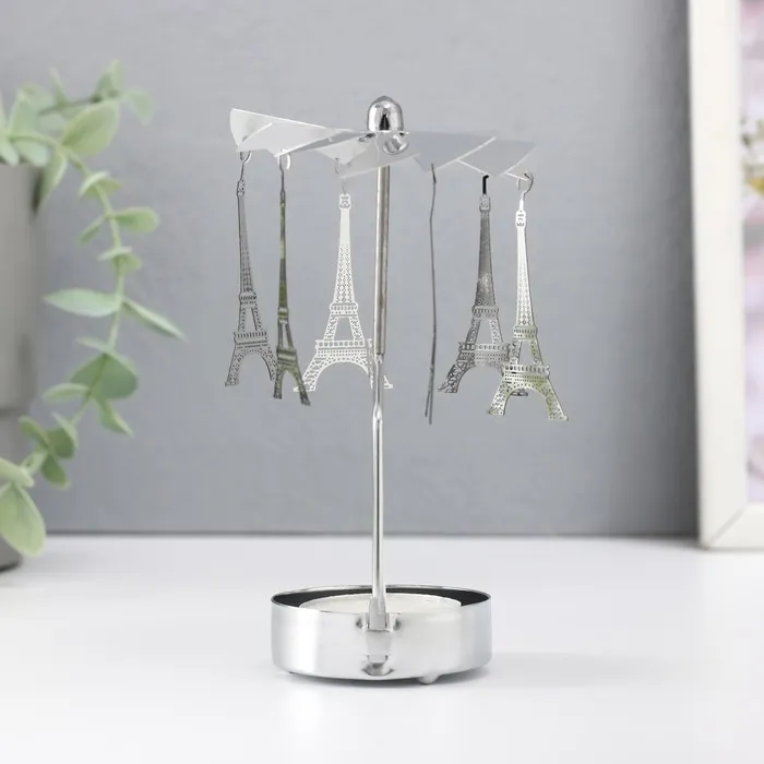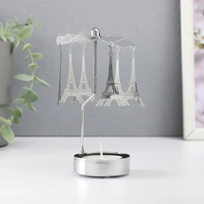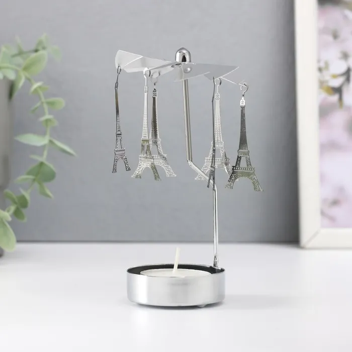 Металлический подсвечник на 1 свечу «Карусель. Париж», d=5 см, серебро, 7.5×7.5×13 см — Характеристики