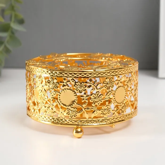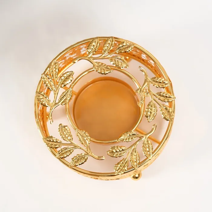 Металлический подсвечник на 1 свечу «Круг. Венок из листьев», золото, d=5.5 см, 11×11×5.6 см — Характеристики