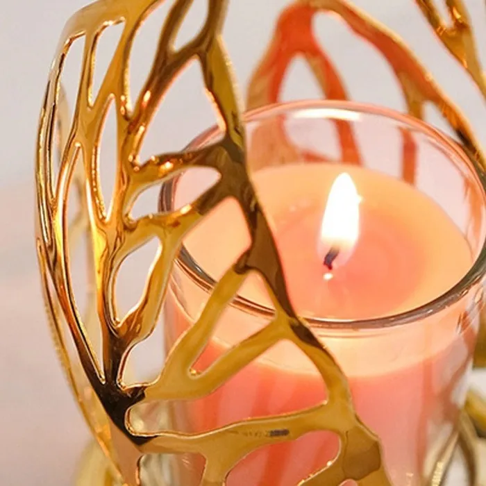 Металлический подсвечник на 1 свечу «Листопад», 8.5×13.5 см, золото