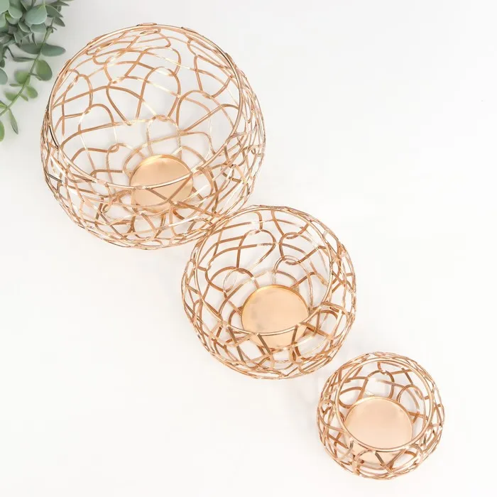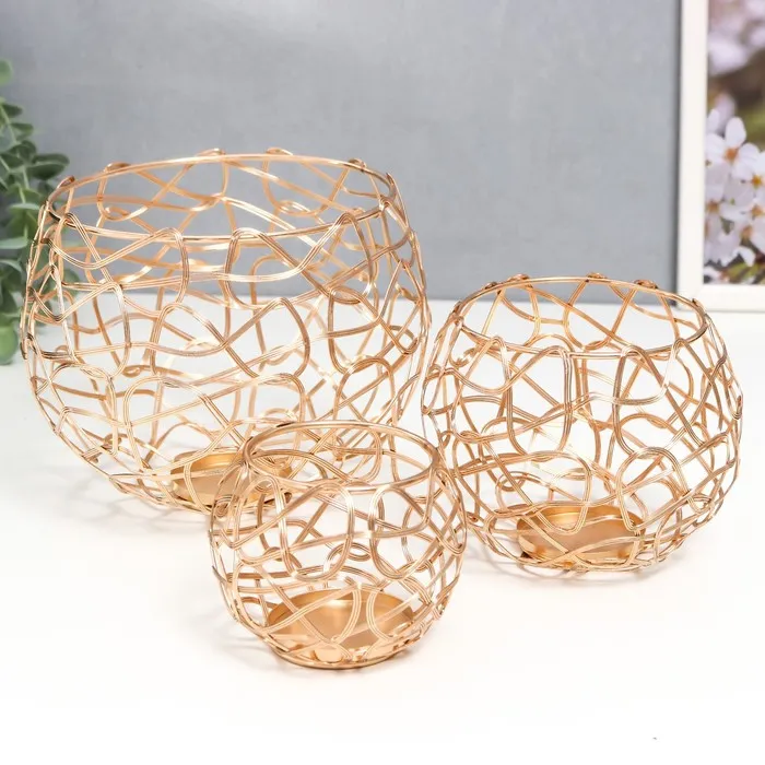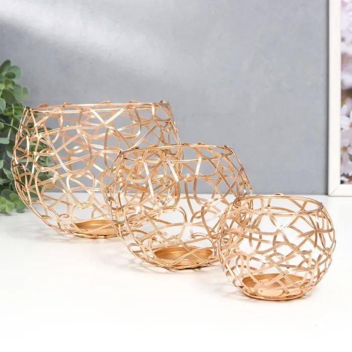 Металлический подсвечник на 1 свечу «Лофт. Переплетение», золото, набор 3 шт., 7×9×9 см; 10×12.5×12.5 см; 13×16×16 см — Характеристики
