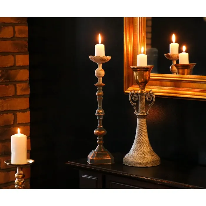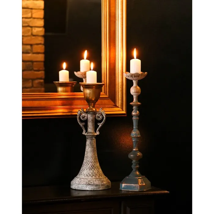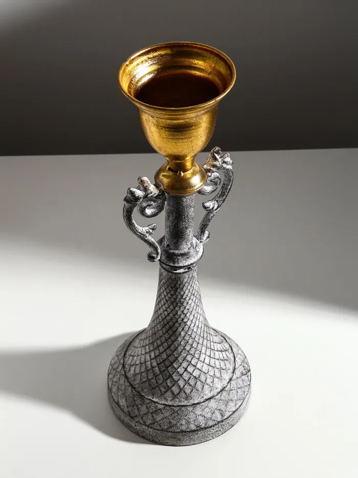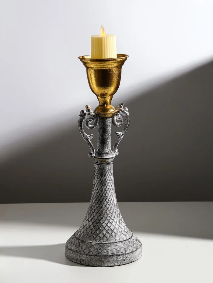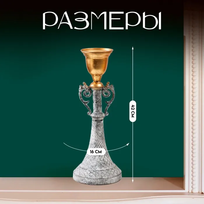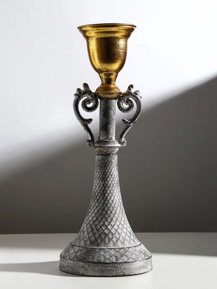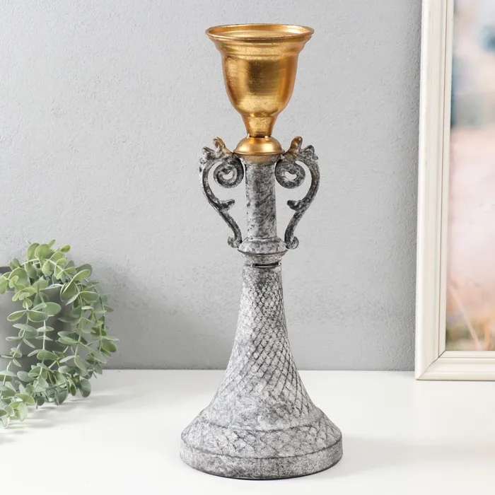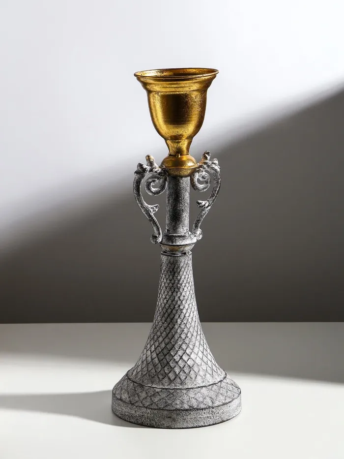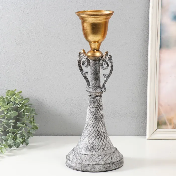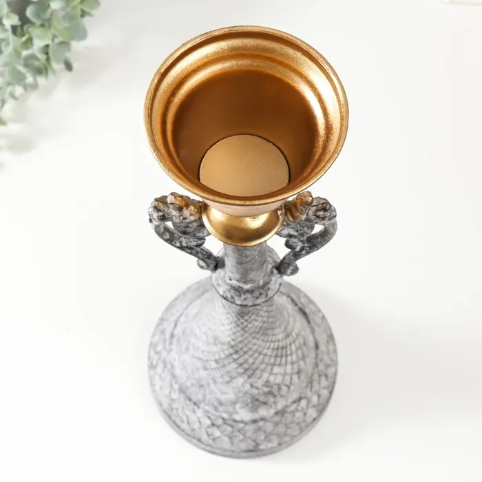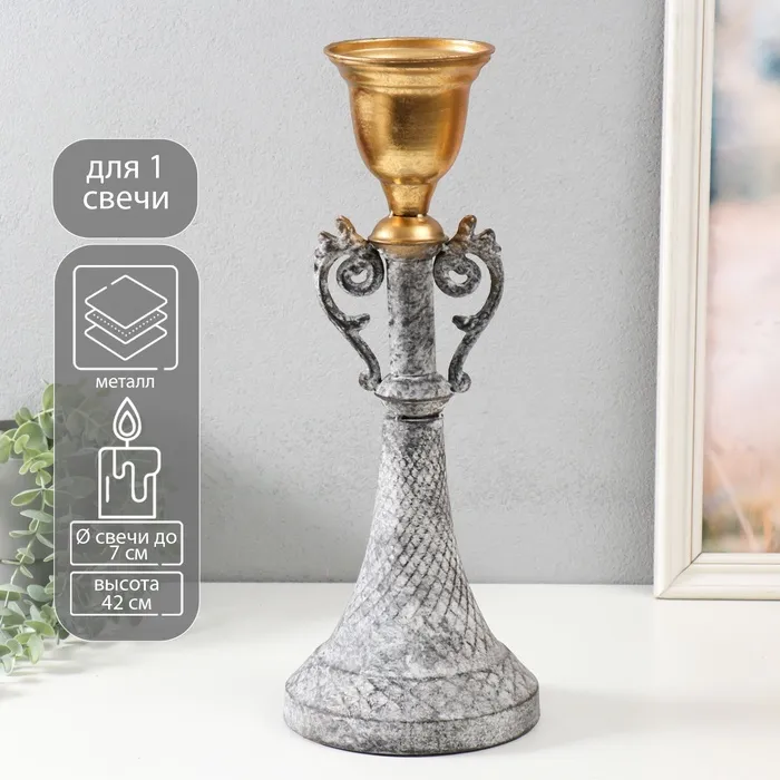 Металлический подсвечник на 1 свечу «Лучиано», серый с золотом, 16×16×42 см — Характеристики