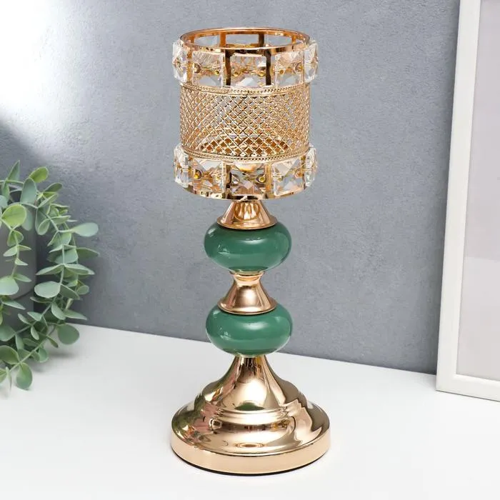 Металлический подсвечник на 1 свечу «Малахитовые камни», золото, 30×11.5×11.5 см — Характеристики