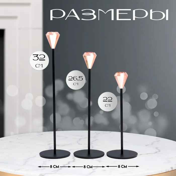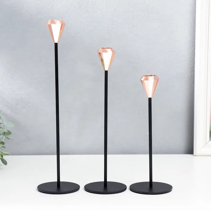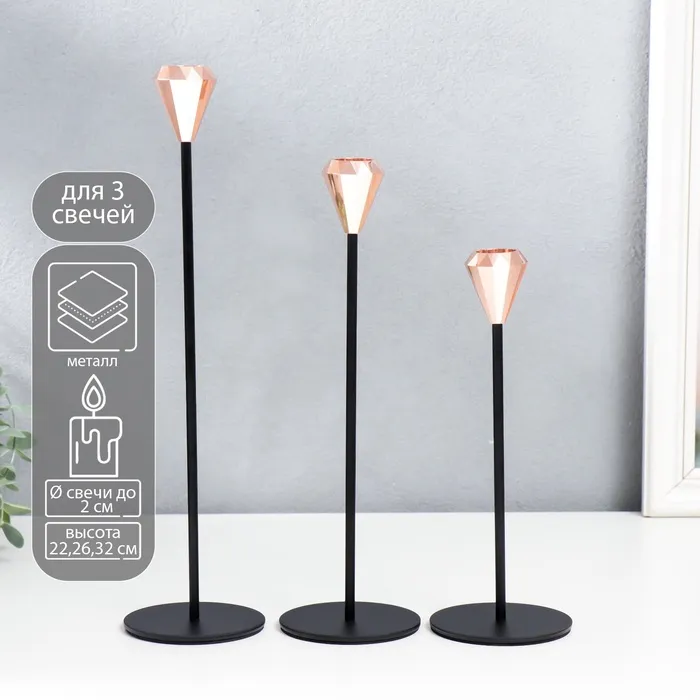 Металлический подсвечник на 1 свечу «Милан. Грани», набор 3 шт., медь, h=22; 26.5; 32 см; 32×8×8 см — Характеристики